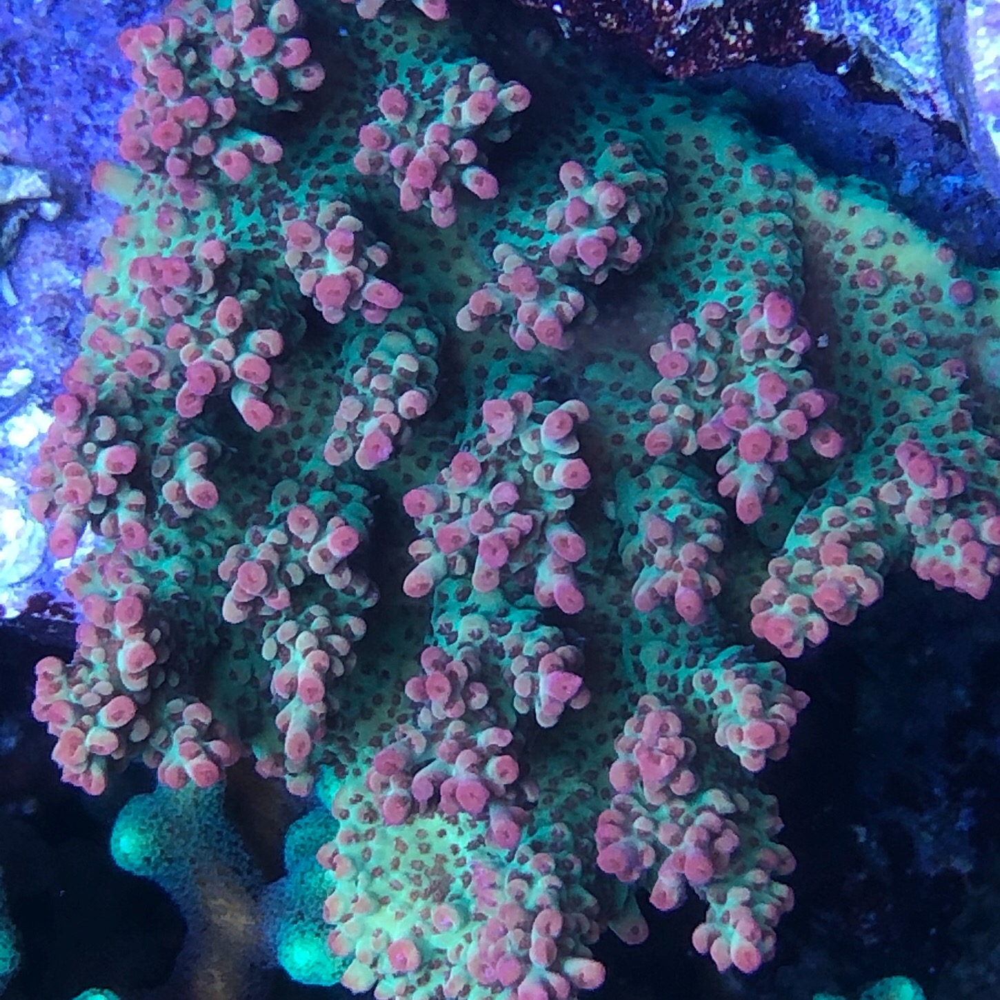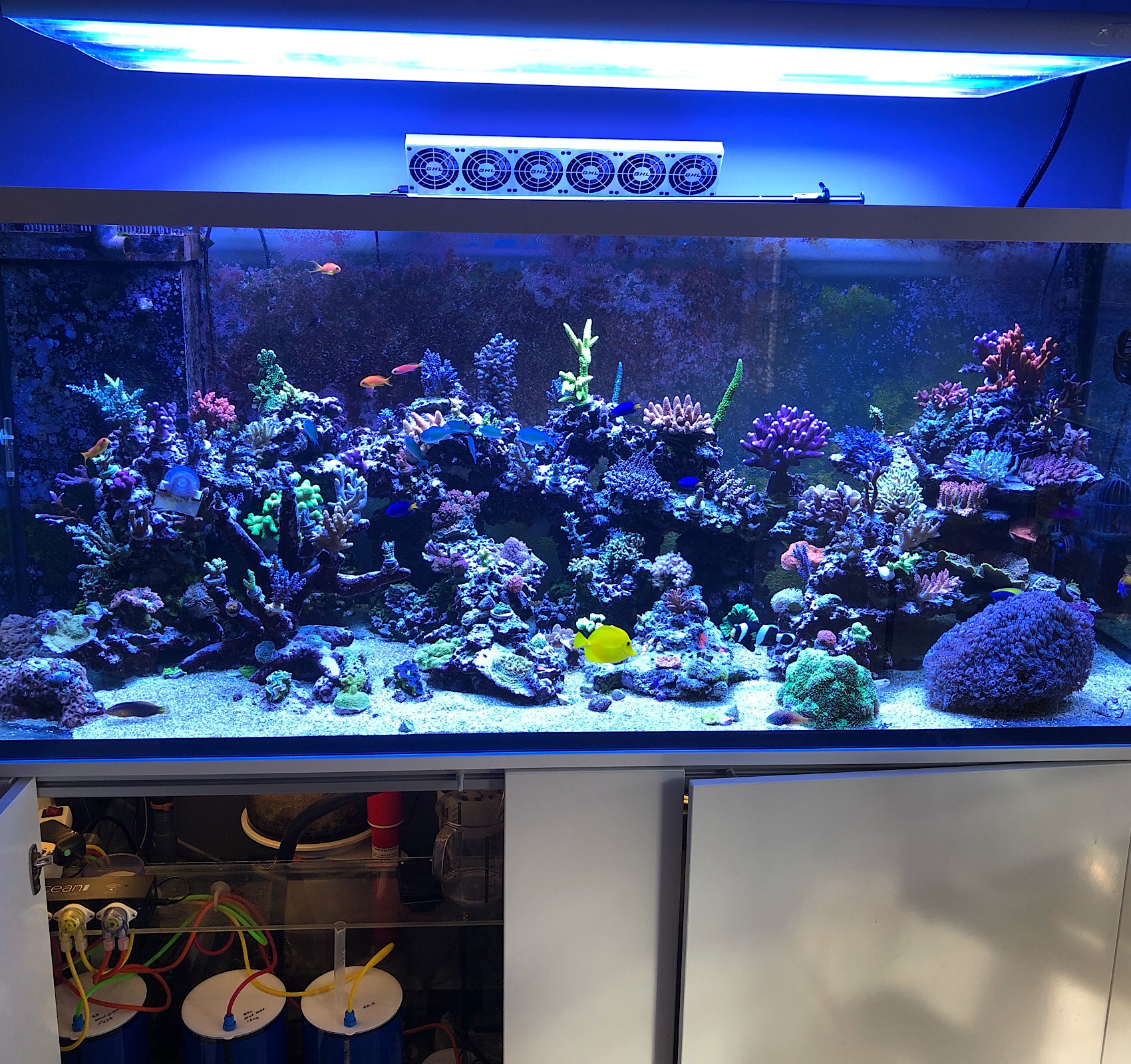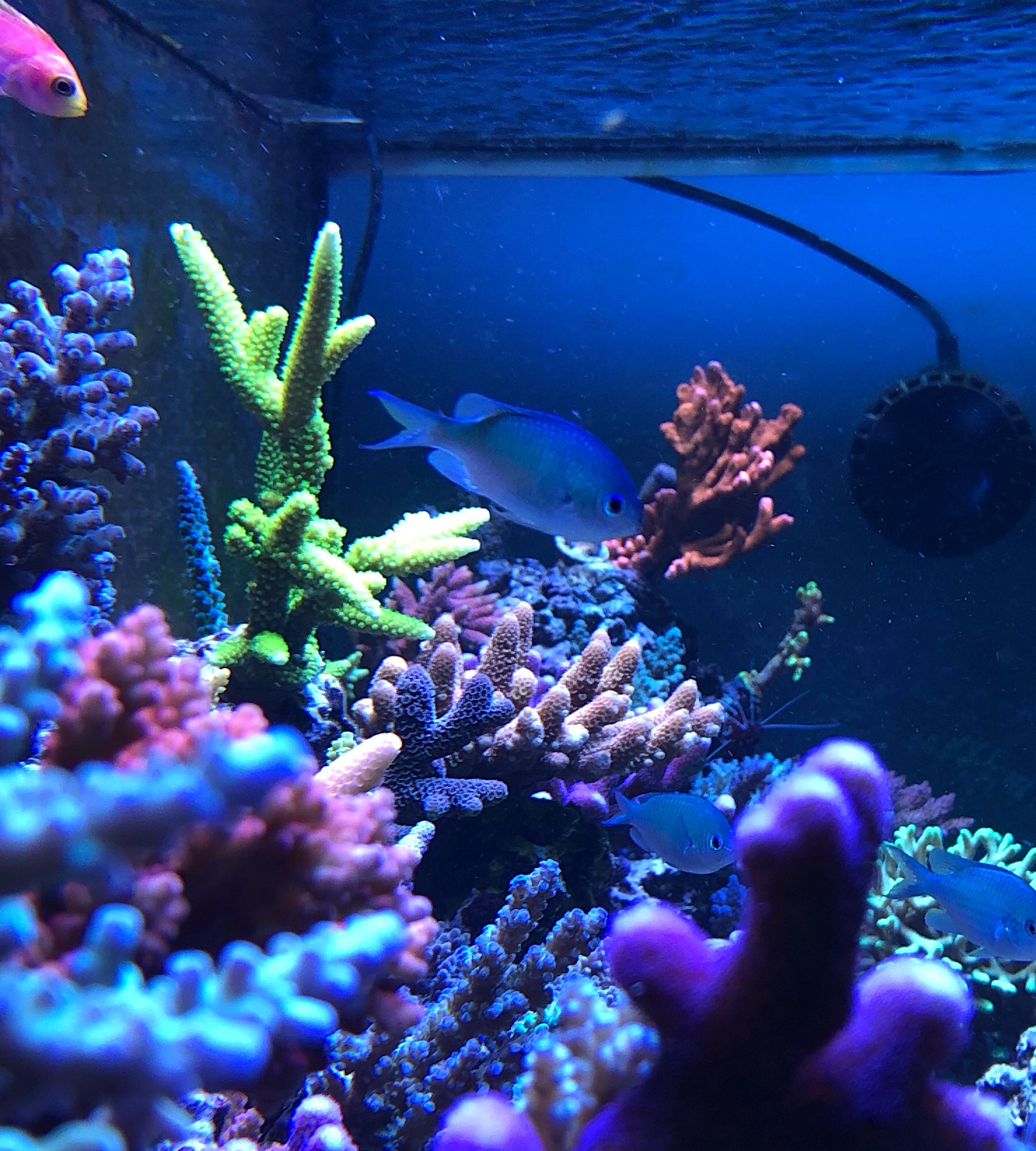 . KH/CA dosiere ich mittlerweile über eine Dosieranlage a‘4 Dosierungen über den Tag verteilt um etwas stabilere Werte zu haben. Ansonsten entwickelt sich das Becken sehr gut find ich.