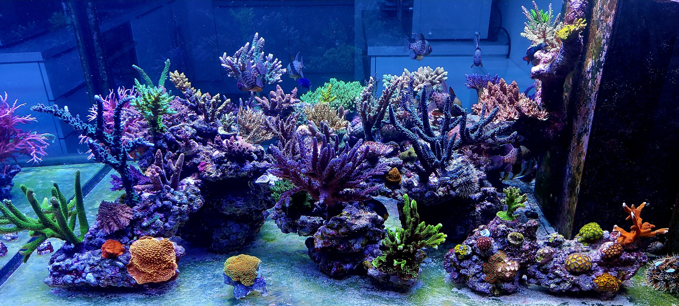 Ja, dass ist ein ganz leichter grüner Algenrasen rechts unten. Die Seeigel und Schnecken lieben ihn.