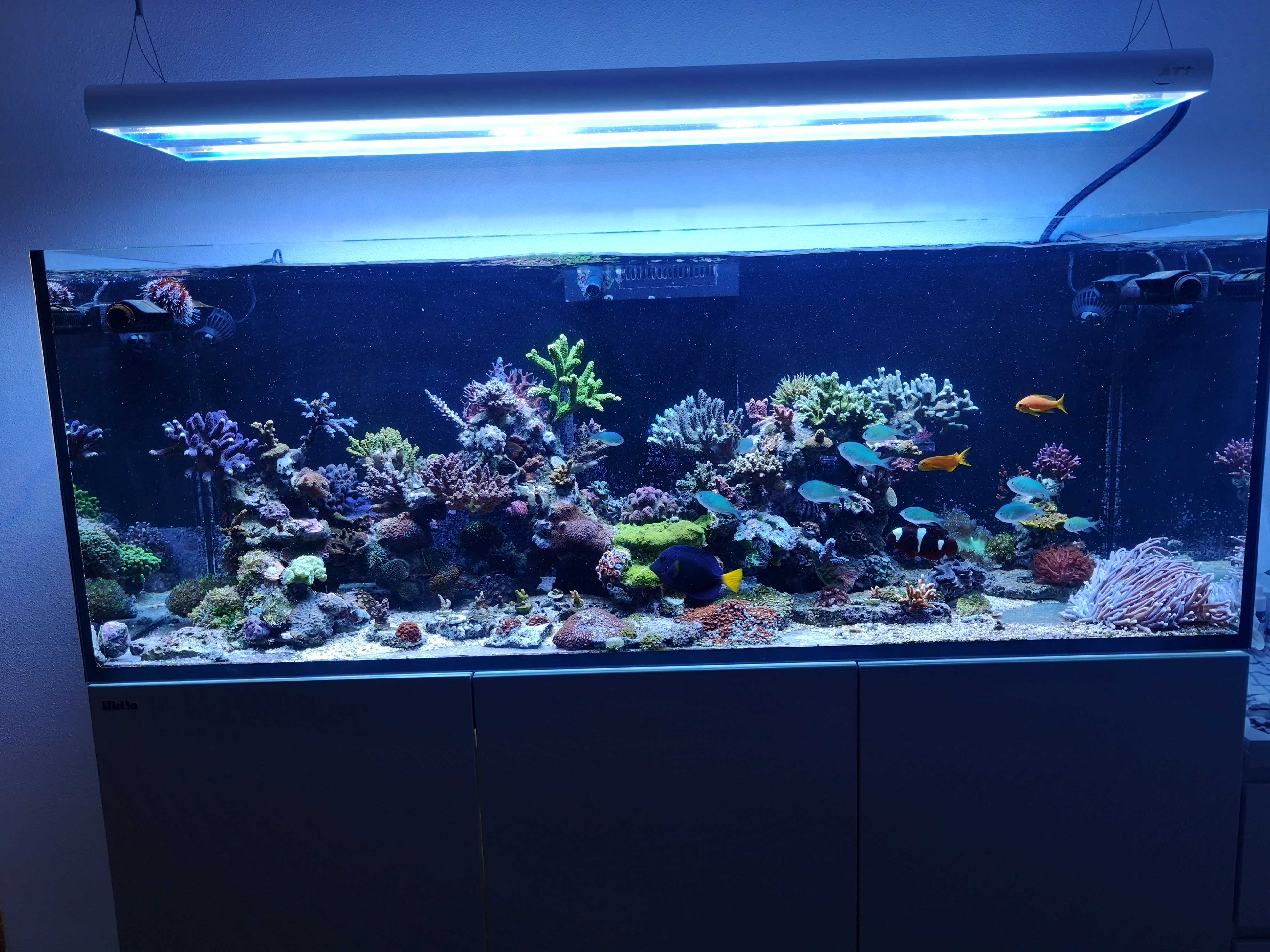 Es ist ein Red Sea Reefer 525 XL. Standzeit ist seit März 2019. Hauptsächlich sind SPS drin und es soll mal irgendwann ein richtig schönes SPS-Aquarium werden......,davon bin ich aber noch weit entfernt. :D