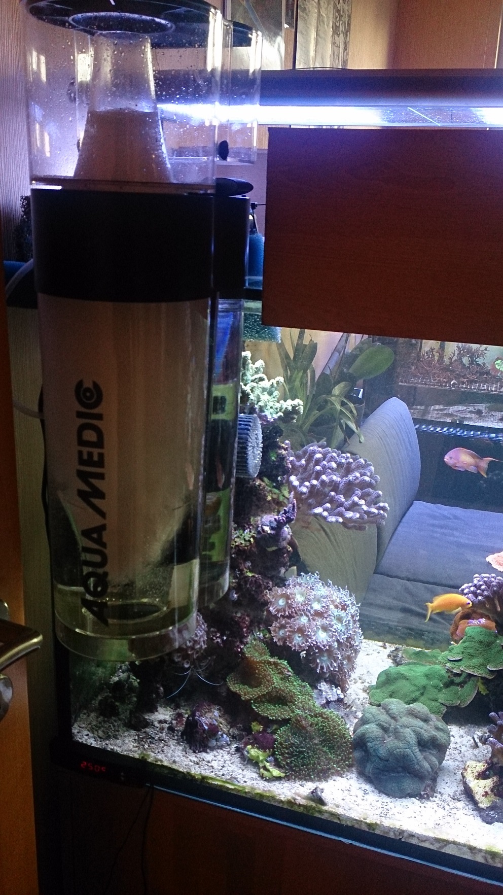 Der Abschäumer verfügt aber für eine regelbare Gleichstromtechnik und ist deswegen sehr gut anpassbar. Momentan läuft er auf halber Leistung und den Nitratwert werde ich in diesem Zusammenhang genau im Auge behalten.