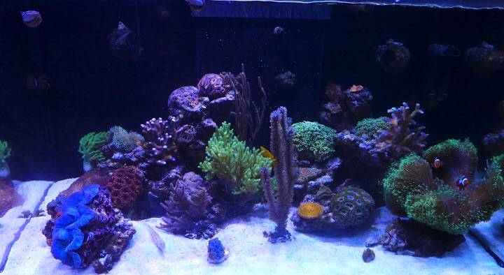 Durch den Futterautomaten (mit Granulatfutter und Flockenfutter bestückt), welcher leider während meines Urlaubes zu großzügig dosiert hat, ist der Phosphatwert etwas stärker angestiegen und das hat sich sofort bemerkbar gemacht. An vielen Stellen sind verstärkt Fadenalgen zu sehen, welche aber wieder langsam zurück gehen. Habe da einfach mal noch ein paar Korallen als Verbraucher eingesetzt, hoffe das noch junge System stabilisiert sich wieder schnell.