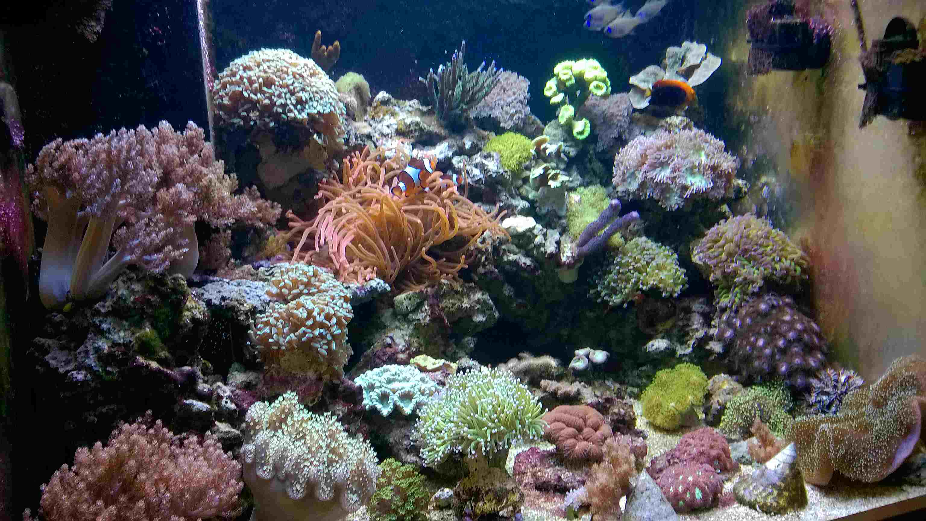 Die Korallen stehen nach meinem Eindruck momentan super. Die Acropora und die Echinopora haben gut zugelegt. Alles, mit Ausnahme der Mone, steht voll offen da. Von der Seite her gesehen, bin ich voll zufrieden, sodass ich die Nährstoffverhältnisse nicht durch einen Adsorber evtl. verschlechtern möchte. So bin am Überlegen, ob ich den Silicarbon-Filter bei den Wasserwerten nicht raus nehme.