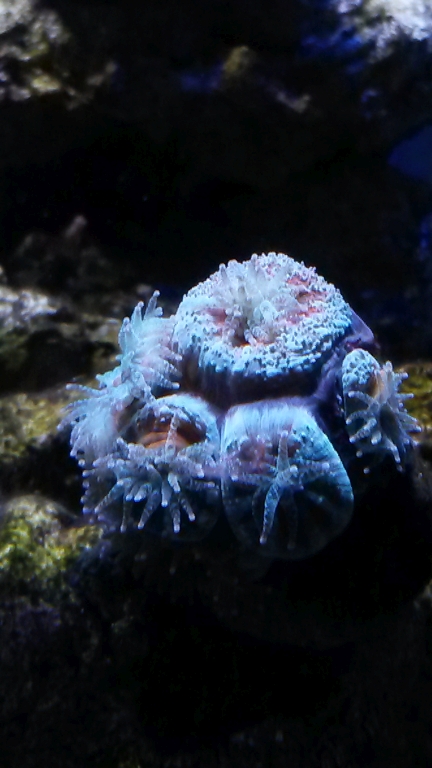 Seit ca. 3-4 Tagen kann ich bei meiner vermeintlichen Acropora tricolor endlich wieder einen lilafarbenen Grundton sehen. Leider bekomme ich absolut kein gutes Bild hin wo dies auch gut zu erkennen ist. Das wird dann noch nachgereicht. Da ich letzte Woche zusammen mit meiner Frau bei meinem Händler gewesen bin nachdem wir shoppen waren (den Kompromiss musste sie eingehen ;) ), sind im Becken 2 neue Tiere eingezogen.