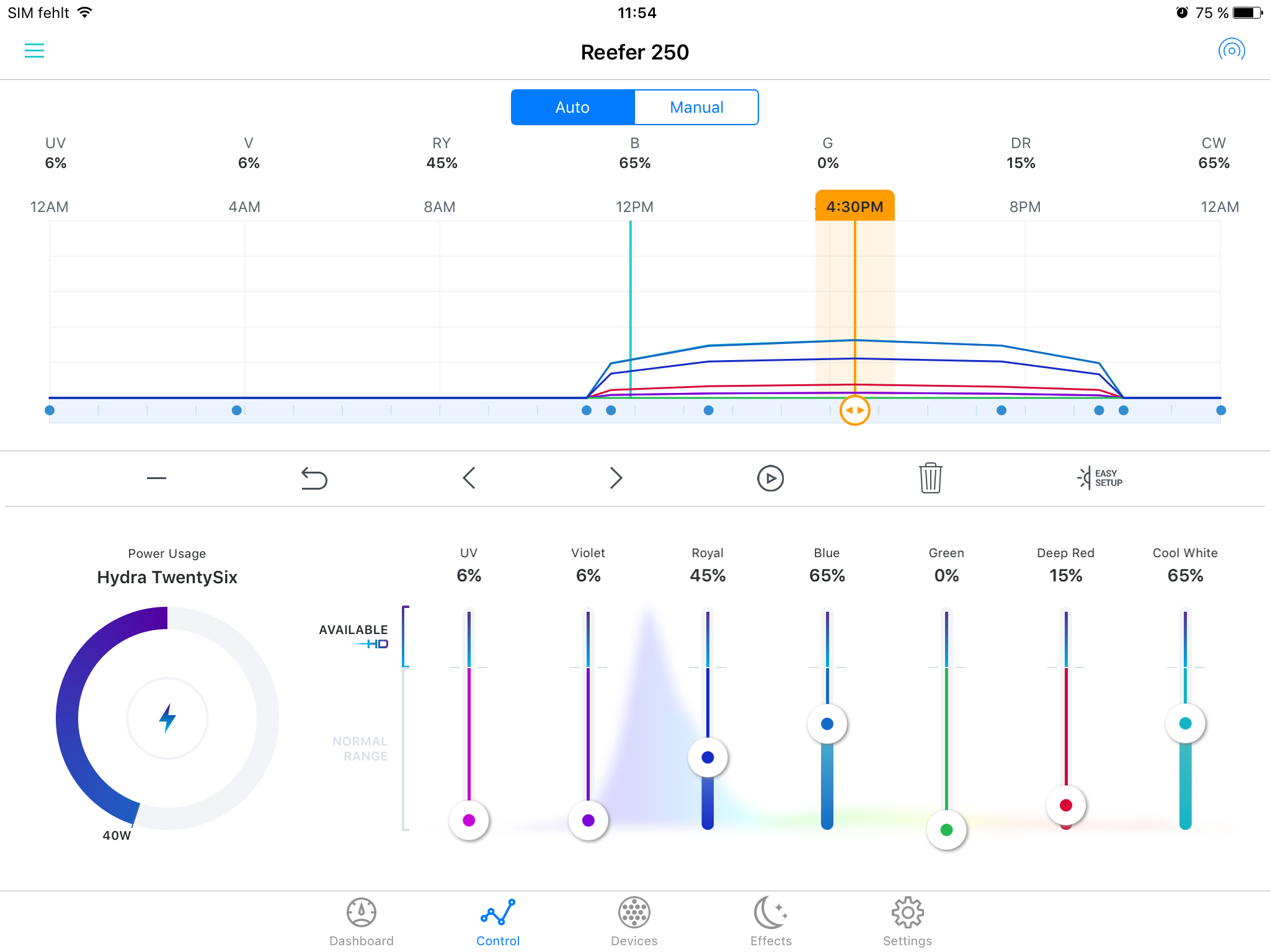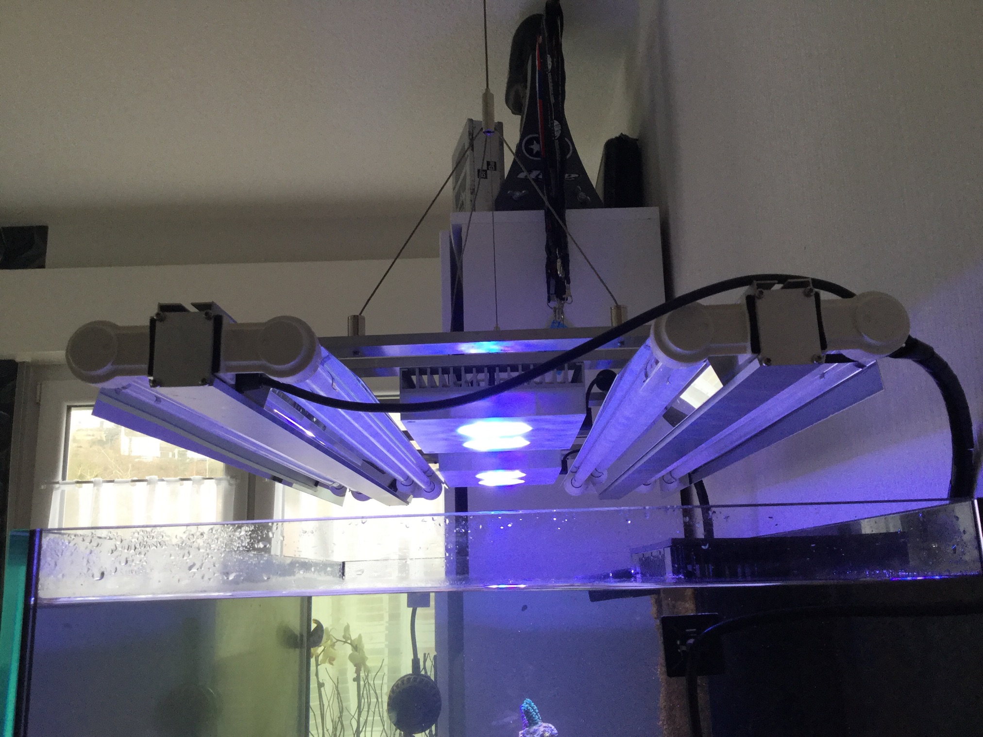 Hier noch ein Bild von den Lampen und den Einstellungen der LEDs, in den Leuchtbalken sind Giesemann Aquablue Coral verbaut.