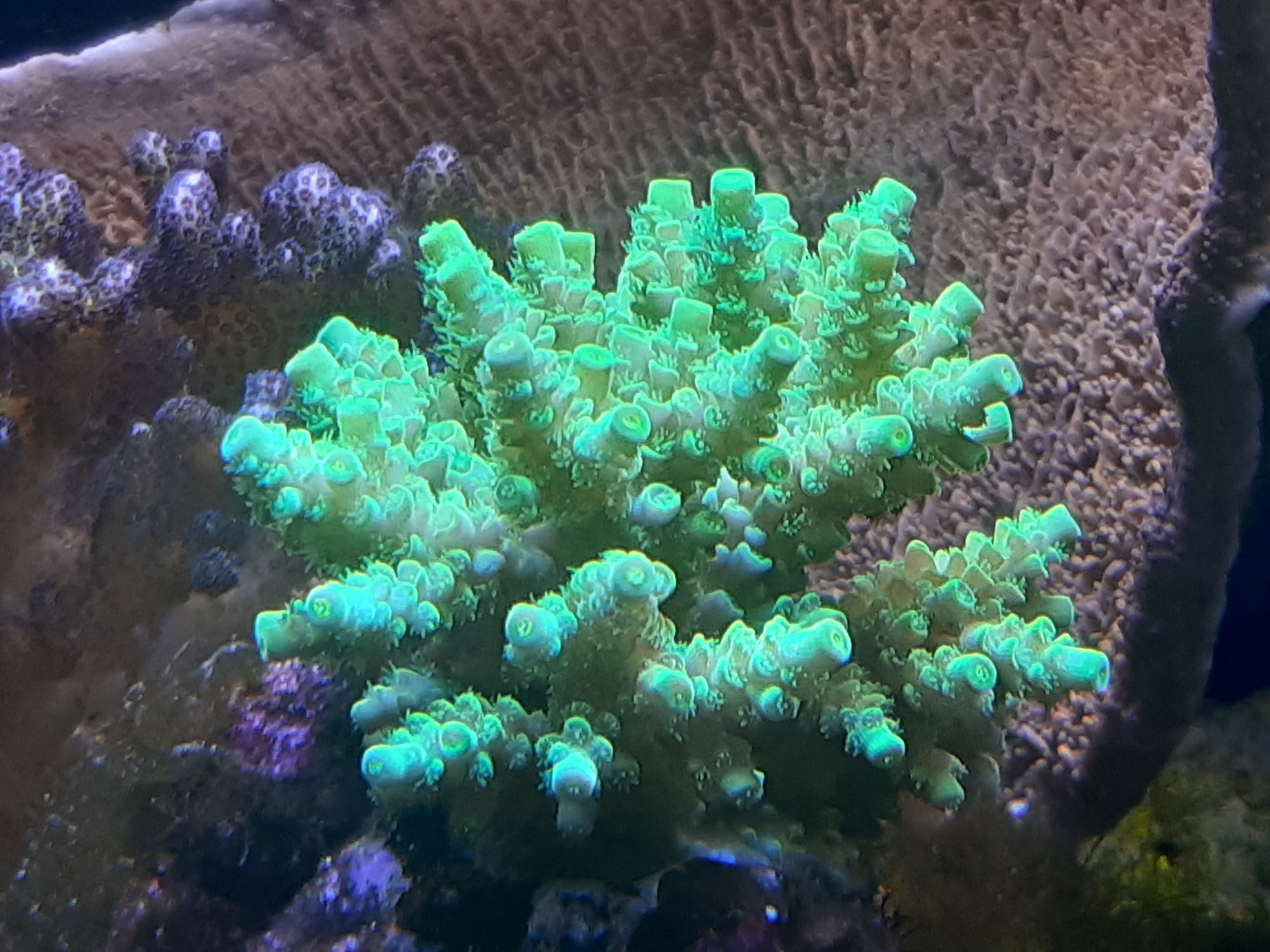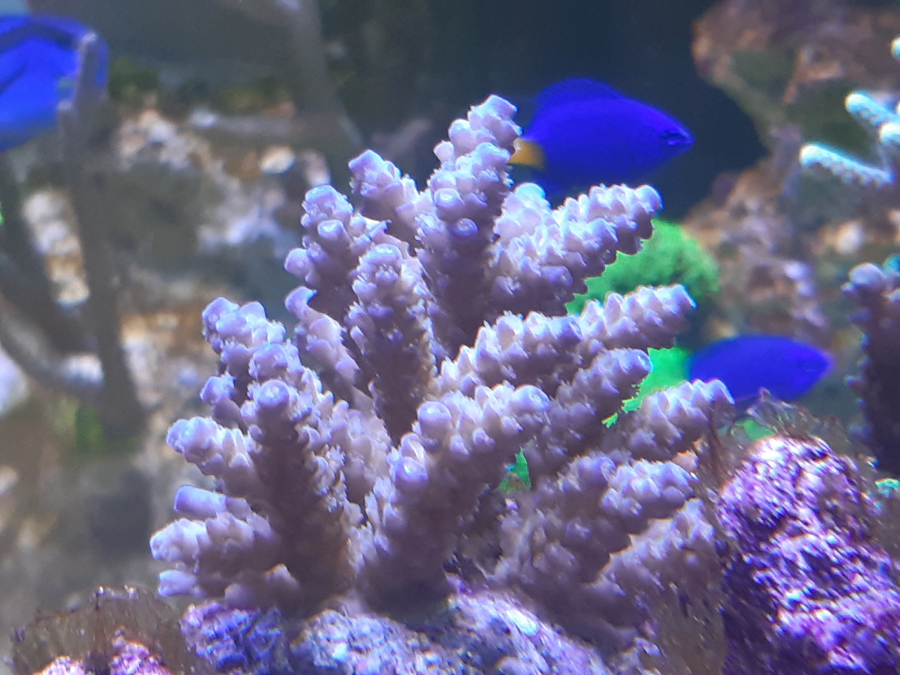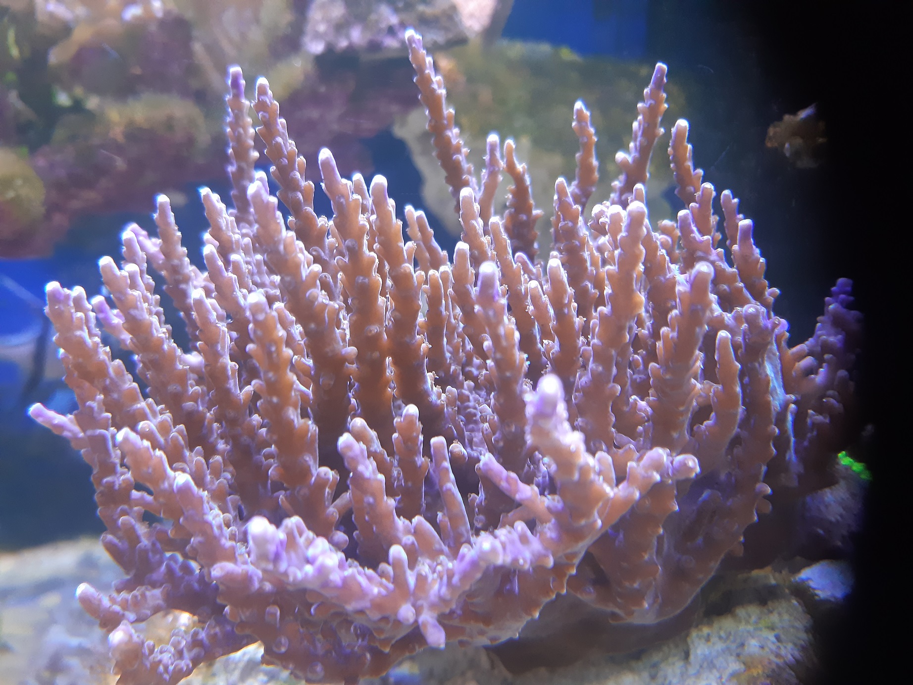 Hier mal ein paar Bilder von den Acros. Die vom alten Becken übersiedelten sind etwas zickig, die waren so niedreige Nährstoffwerte wohl nicht gewöhnt.