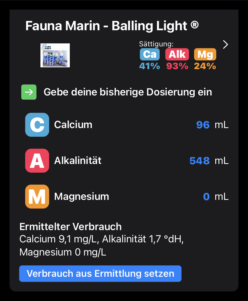 Umgerechnet auf Sangokai (wenn das hier stimmt aus dem AQ) müsste ich dann folgendes dosieren …