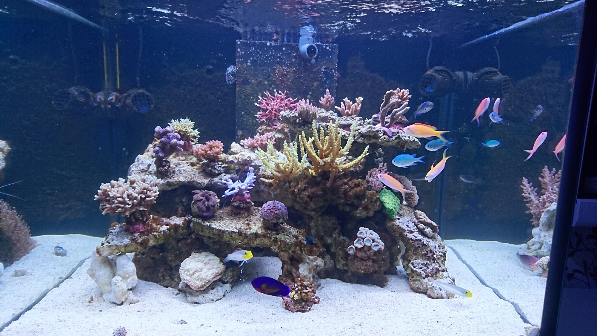 Mein Problem war/ist das gerade im mittleren Bereich bis zum Ablaufschacht des Beckens bzw. bei der Pocilopora weniger Strömung ankam. Durch die Änderung vorhin dürfte dies etwas besser geworden sein.