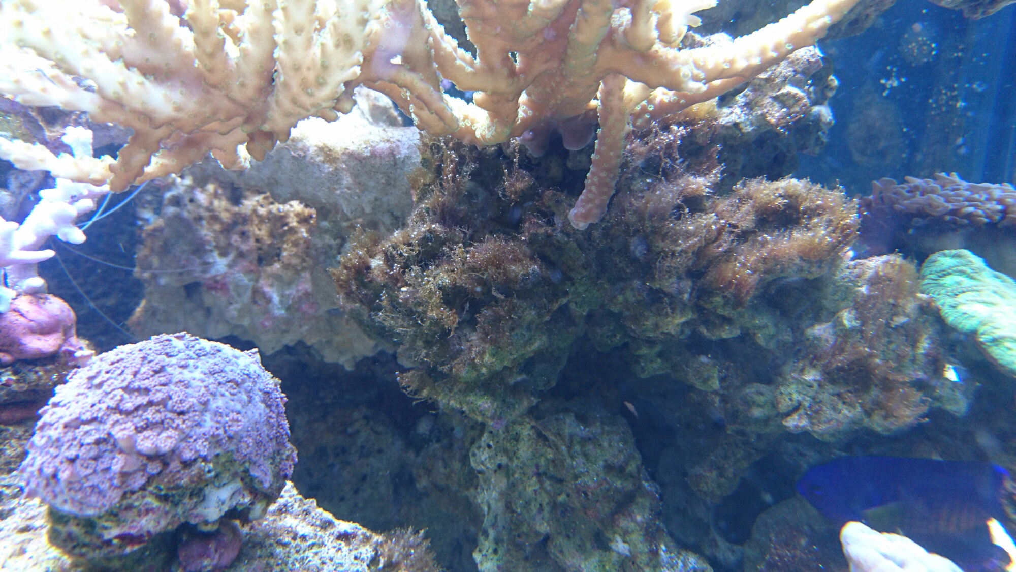 Da bin ich sehr erleichtert, dass es wohl nicht Bryopsis ist. Meine Algenpolizei war doch eher spärlich besetzt und ich habe mit fünf Schnecken, zwei percnon gibbesi, einem Tripneustes gratilla und einem Blenny ein wenig nachgelegt.