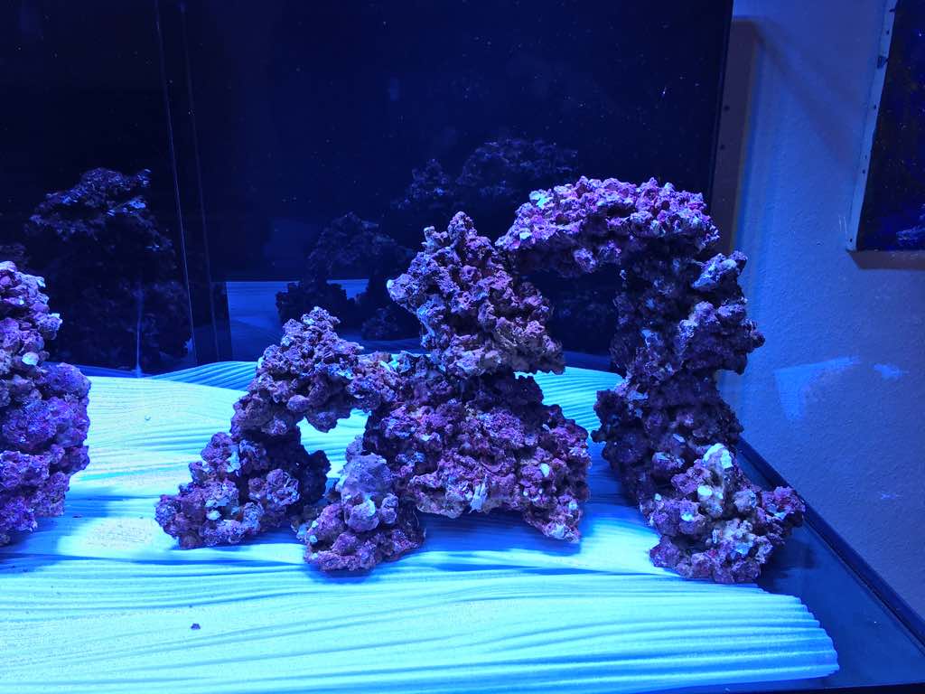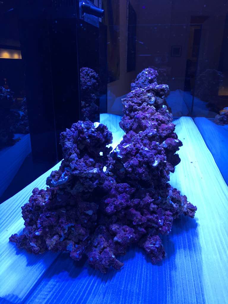 Die Life Rocks von Caribsea werden mit einen Bakterienfilm besprüht und die RRR werden mehrere Wochen in Salzwasser mit Bakterien zum besiedeln gelagert.