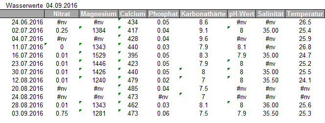Der Werte sind wieder im Lot, aber trotzdem schade. - Weitere Beobachtung meines Phosphatwertes. Das Hin und her macht mich noch wahnsinnig. Festhalten lässt sich, dass ich mittlerweile alle 3 Wochen mein Phosphatadsorber ergänze oder wieder neu befüll mit etwa 300ml (1:1 gemischt aus ROWA Phos ExPhos & Fauna Marin Ultra Phos 0,04).