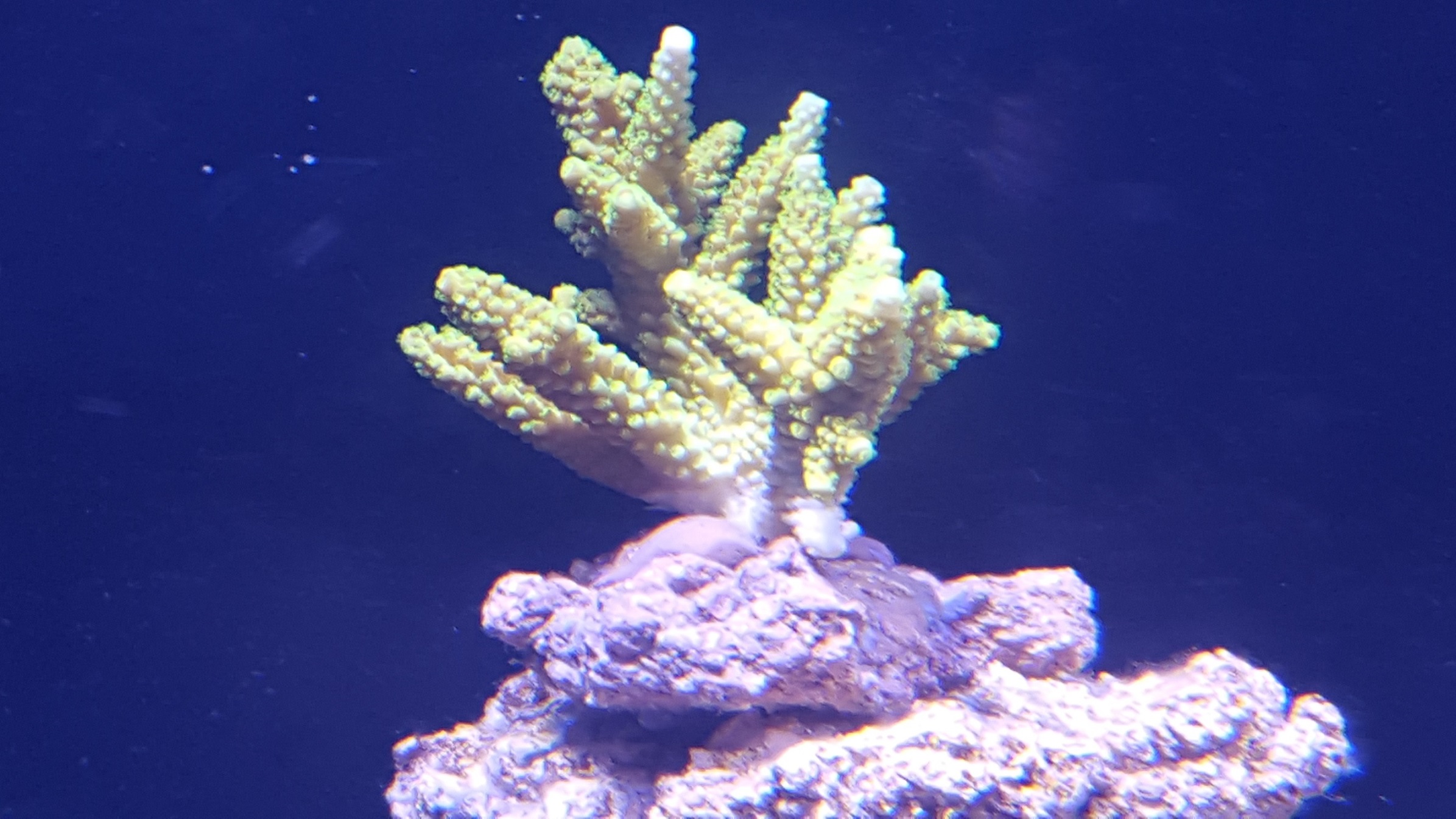 Die weissen Ansätze zeigen nur die gelbe Acropora, sowie die beiden Moniporas, bei allen anderen Korallen sieht man gar nichts.