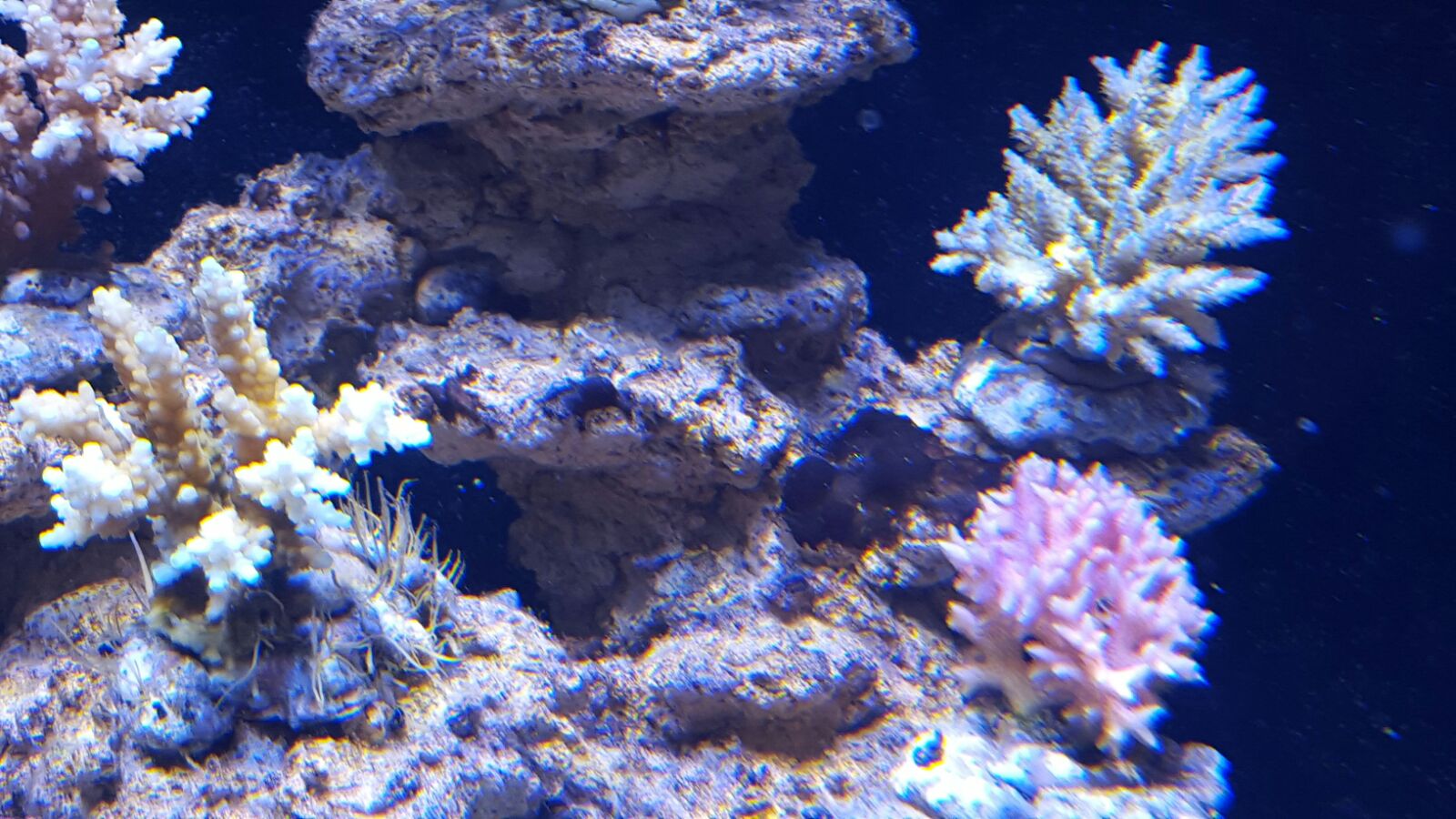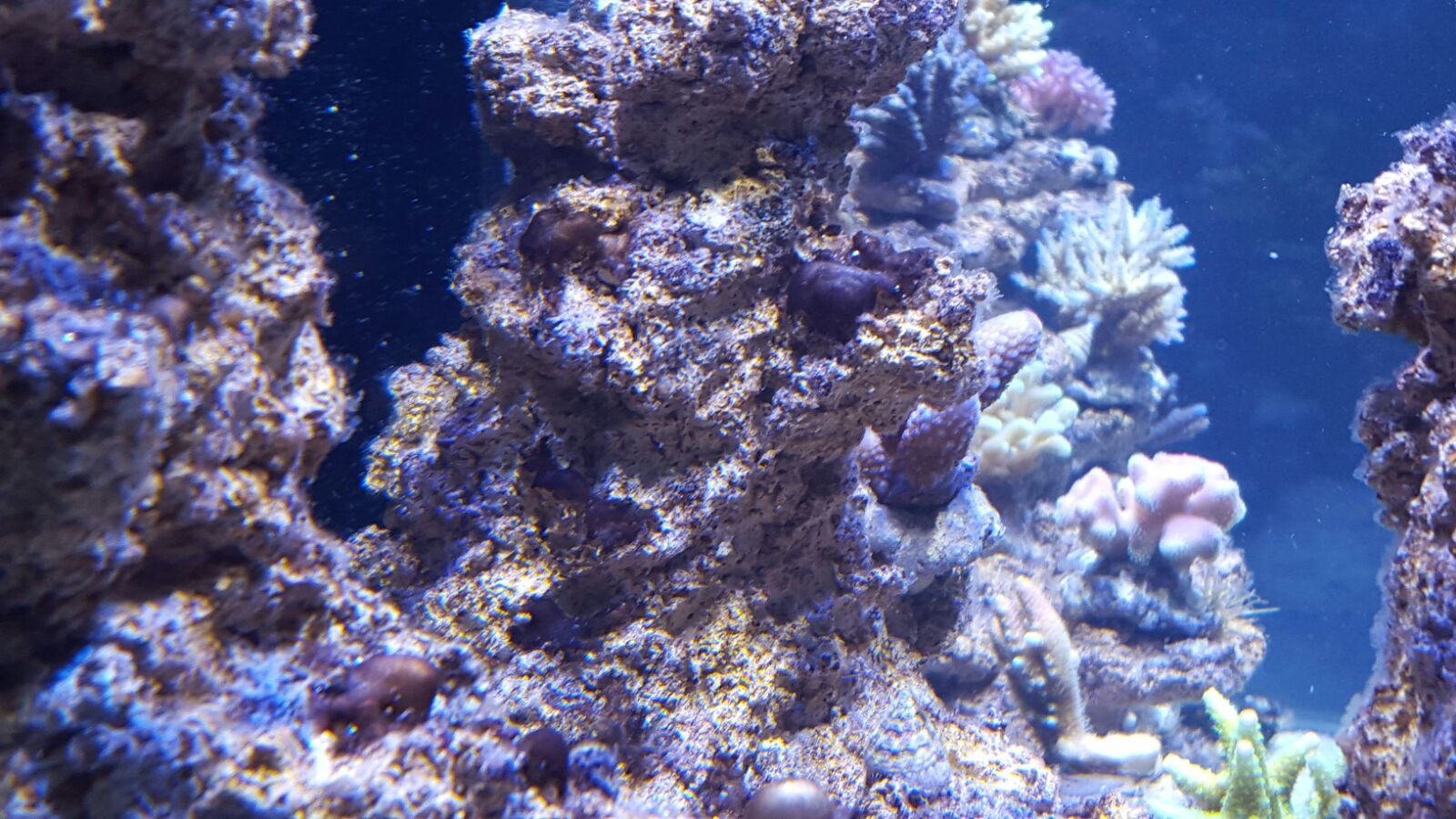 Möchte mal wieder ein Update meines Aquariums bekanntgeben. Die Keramik beginnt langsam zu leben, es bildet sich ein Algenfilm auf der Keramik und sie fängt langsam an dunkler zu werden. Die Korallen sehen gut aus, jedoch habe ich gestern bei einigen einen weissen Ansatz entdeckt, der wie ich mich erinnern kann vorher nicht da war. Die Fotos sind teilweise viel zu überbelichtet, deshalb stimmen auch die Farben nicht immer.
