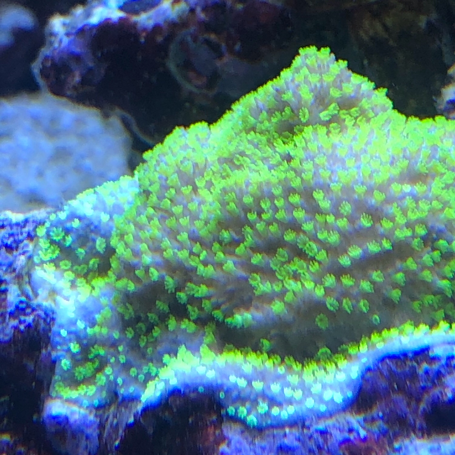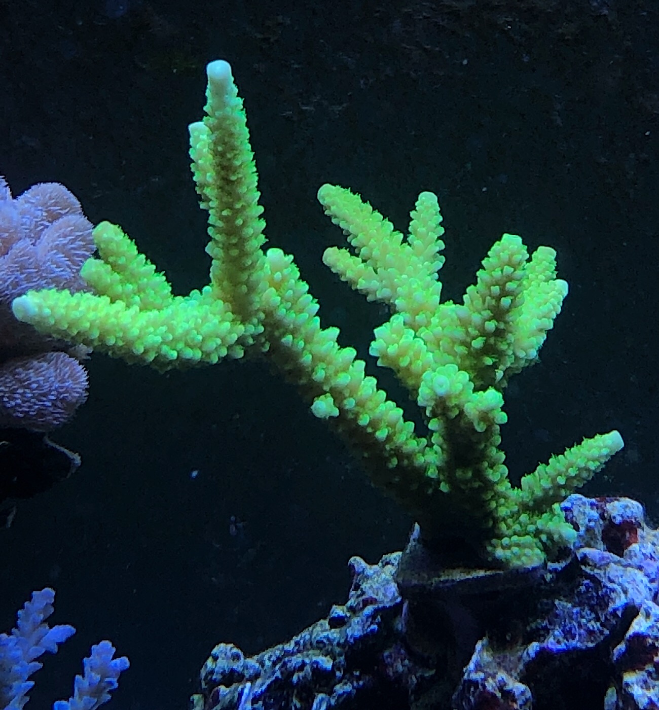 Also ich bilde mir ein das meine Enzman Acropora sehr viel heller geworden ist. Und die Short cake ist auch um einiges heller geworden. Alles andere steht eigentlich gut da.
