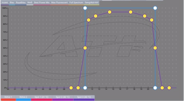 Die Einstellung der Lampe bzw. deren LEDs ist ja jetzt eher konservativ - ich habe nicht wirklich eine Blaulichtphase. Zu "Testzwecken" hatte ich mal die ersten und letzten 30min der LEDs als max_fluorescens eingestellt - das war schon krass. So extrem würde ich es vermutlich nicht haben wollen, aber gibt es "Empfehlungen" für eine "beeindruckende" Blaulichtphase? Was meint Ihr?