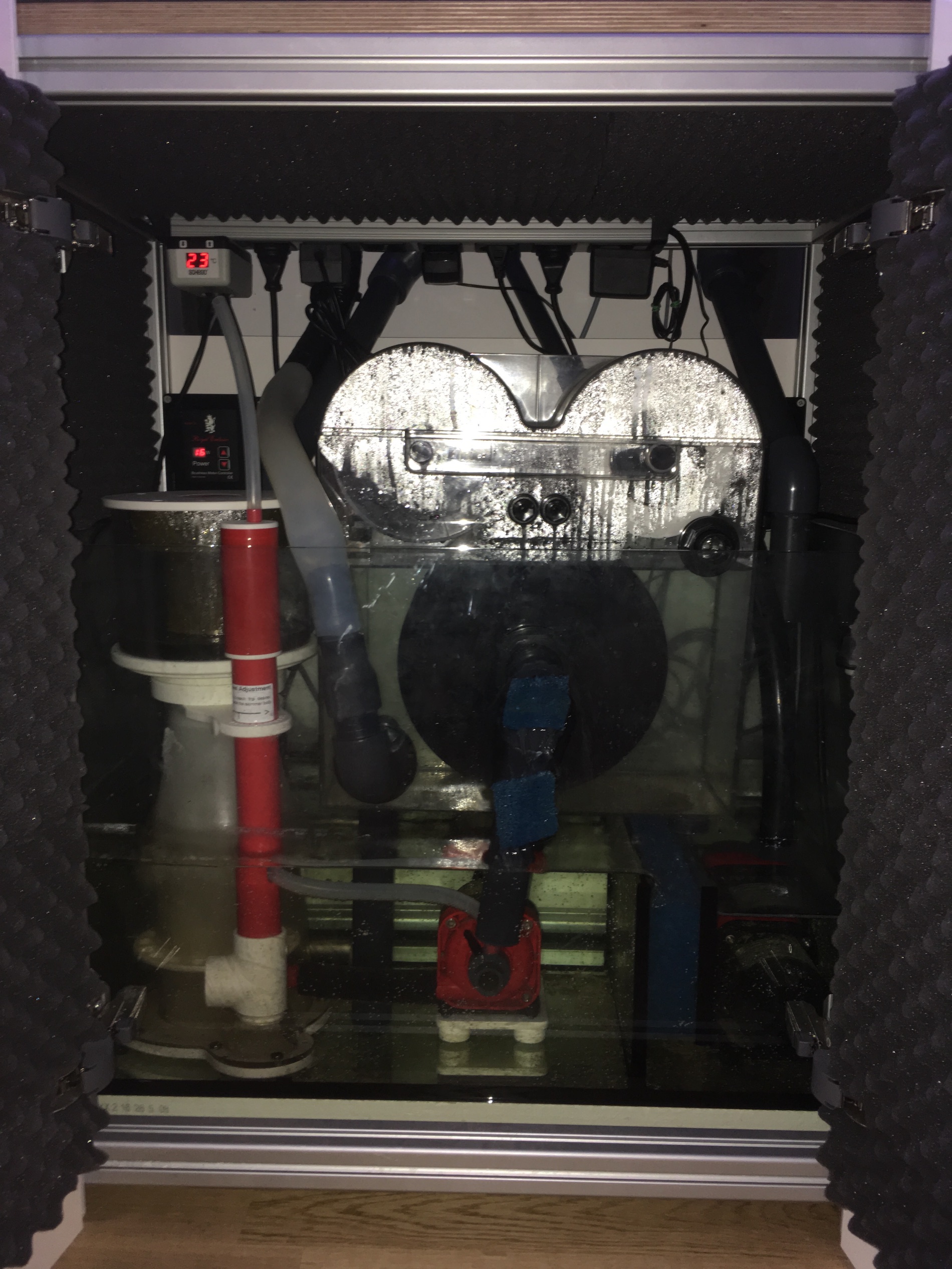 - 50 Watt Speedy regelbare RFP. Läuft bei 25 Watt, es dürften so um die 1200l/h umgewälzt werden. Anfangs habe ich mir gedacht, dass die nicht entkoppelt werden muss...Fehler :) immer brav alles entkoppeln, es wird definitiv leiser.