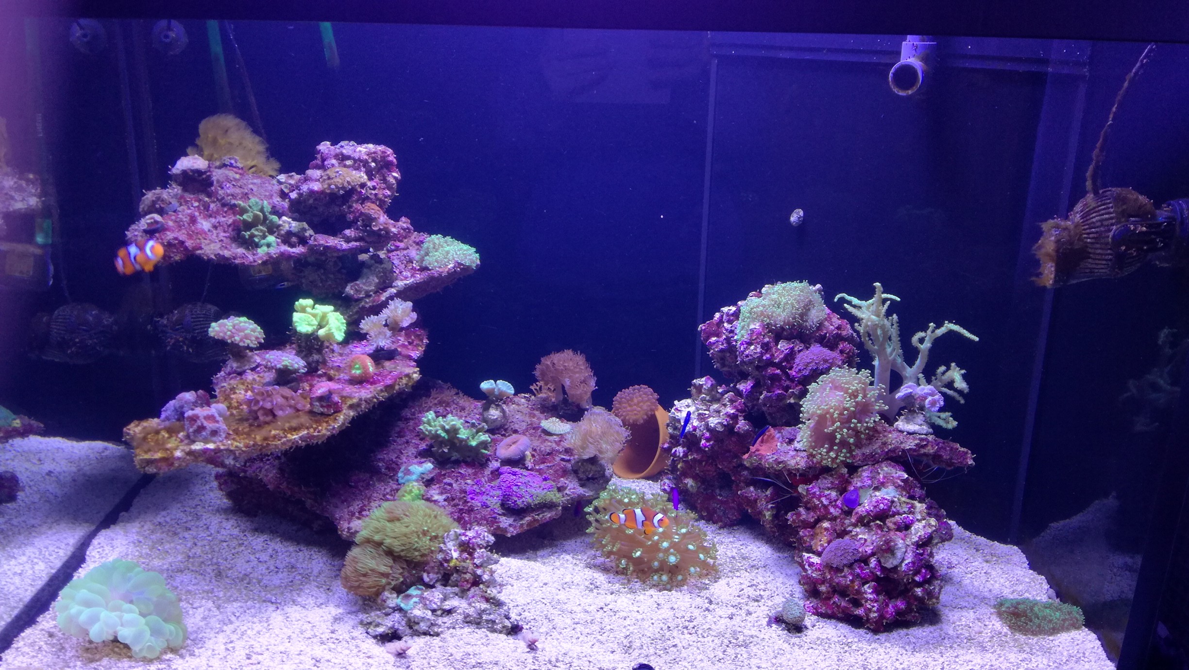 - die Krusten oben würde ich runter setzen und den Platz für ein paar schöne SPS aufsparen. Wenn die Krusten zu gut wachsen, bekommste sonst auch Probleme, die in Schach zu halten. Pass auch bitte mit dem Briareum auf.
