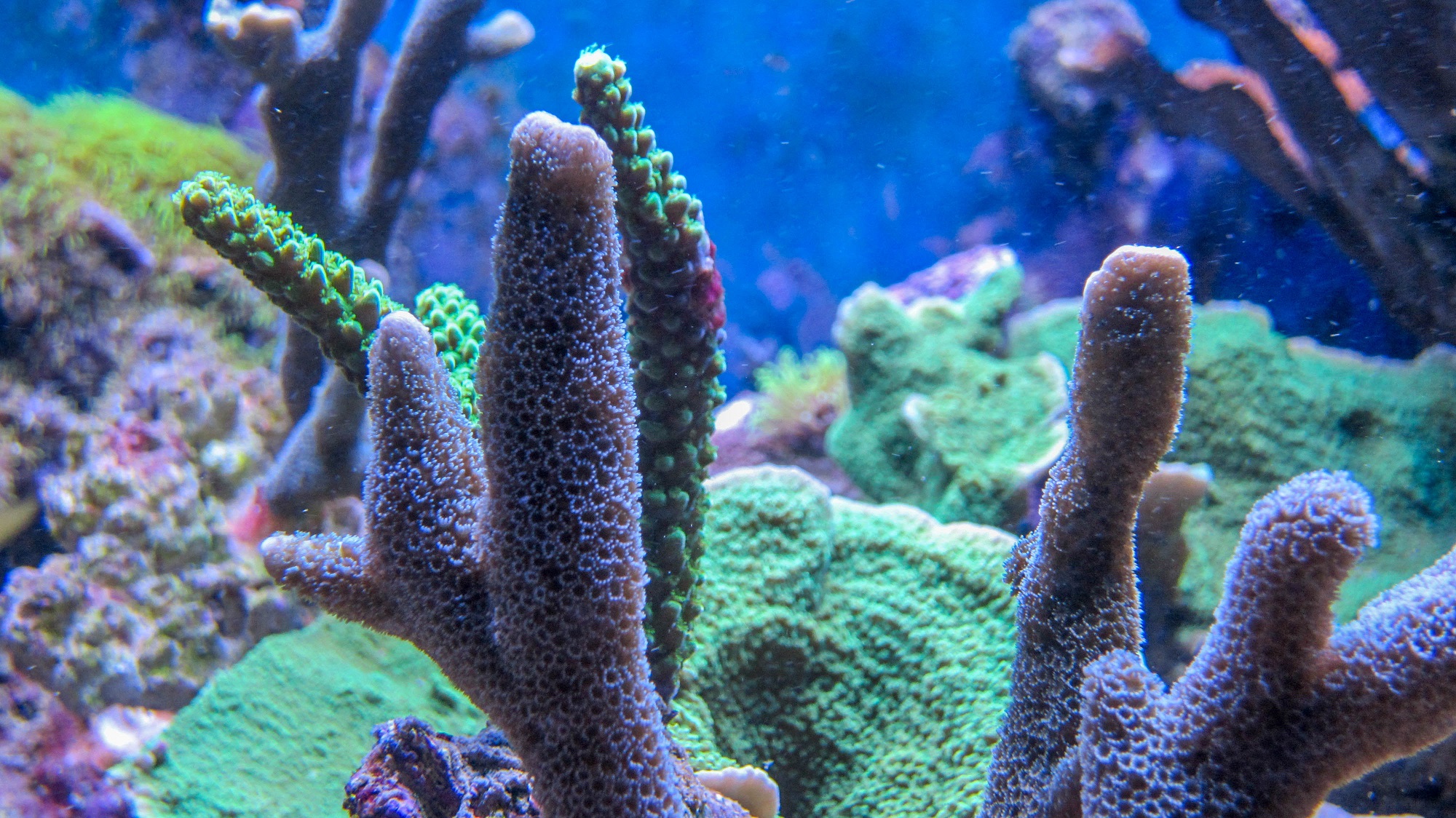 - Montipora digitata färbt sich von silber ins bläuliche