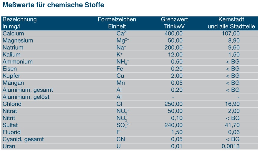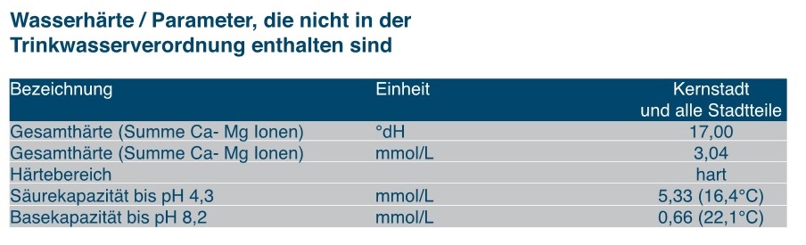 Hier noch die Werte des Leitungswassers meines Wasserversorgers: