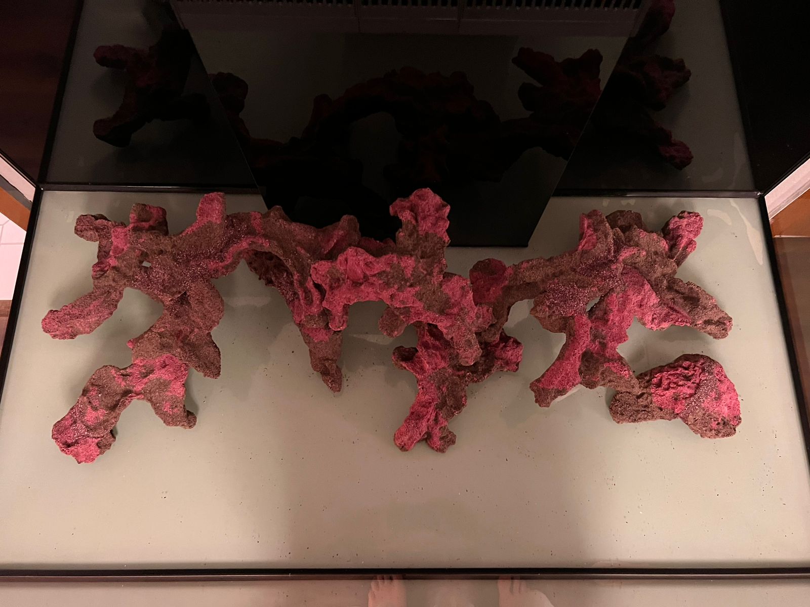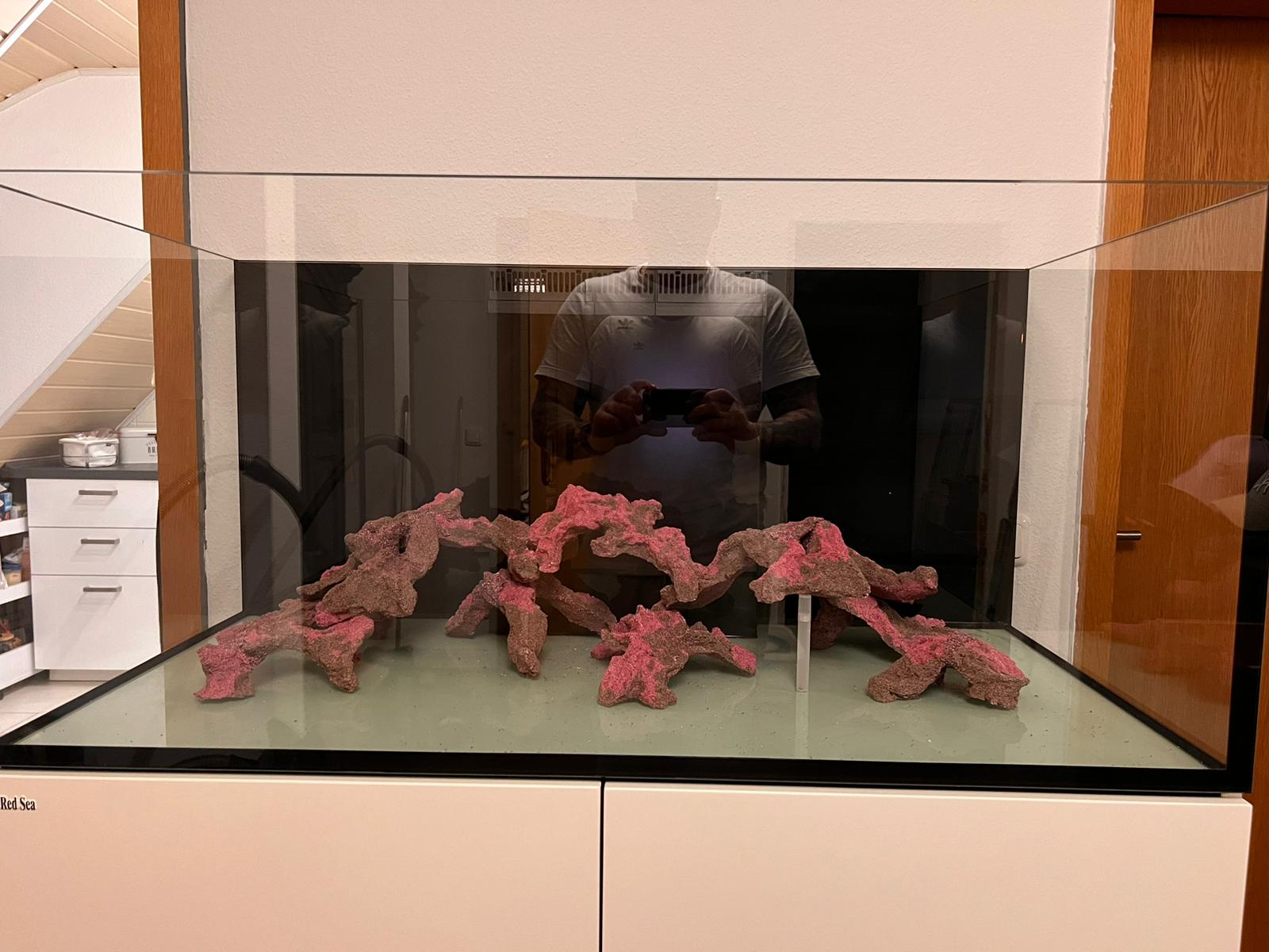 das kann man auf jeden Fall so machen, allerdings wirkt es mir rechts sehr nah an der Scheibe, da kannst Du a) wenig Korallen hinsetzen ausser das, was nur krustenförmig wächst, und b) macht es beim Scheibenputzen Probleme. Und das wirkt dann auch sehr ins Becken reingedrängt. Das würde ich noch korrigieren, aber ansonsten ist das ein typischer Aufbau mit eporeef, der langfristig sehr gut funktioniert und der Dir alle Vorteile bietet hinsichtlich Beströmbarkeit, Bodenpflege, Stellfläche etc. In der Mitte bist Du recht roch, hier solltest Du also nicht platzieren an Korallen, die noch stark nach oben wachsen. Wenn Du da eine Koralle mit Wachstum nach oben planst, würde ich die Höhe da auch noch etwas runter setzen. Aber sonst alles schicki :-)