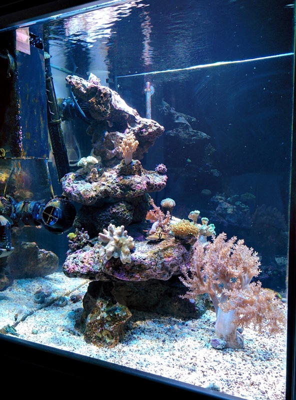 Deine Strömungspumpe die man auf der Gesamtansicht sieht ist völlig falsch platziert. Auch hier einmal das Stichwort "Strömungskonzept" in den A-Z durchlesen. Du musst Deine Pumpe so platzieren, dass Du möglichst viel Wasser bewegst und Druck auf Deine Korallen und Gestaltung bekommst. Die Scheibe zu beströmen ist ziemlich sinn- und wirkungslos.