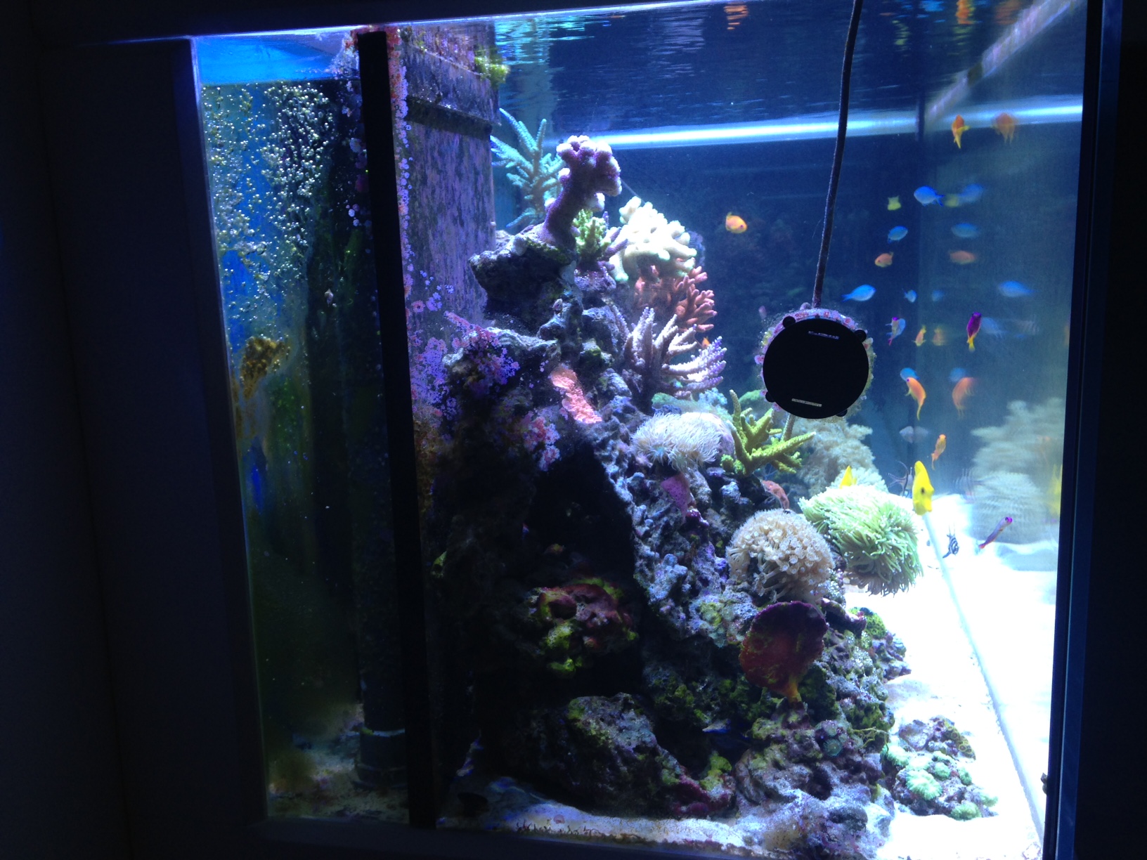 Natürlich habe ich dann auch einige Dinge optimiert, wie beipielweise die Lampeneinstellung laut Sangokai-Empfehlung (war vorher zu blaulastig), die Strömungspumpen. Und in den letzten tagen habe ich auch den Abschäumer auf sehr trocken eingestellt. Auch habe ich den Durchfluss reguliert.