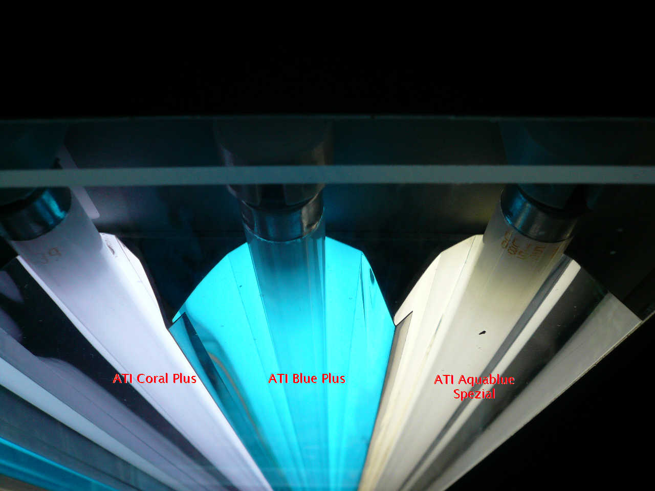 Ich habe anbei noch ein Bild in meinem Archiv gefunden, welches sehr schon die Lichtfarben der oben genannten ATI T5 Röhren zeigt: