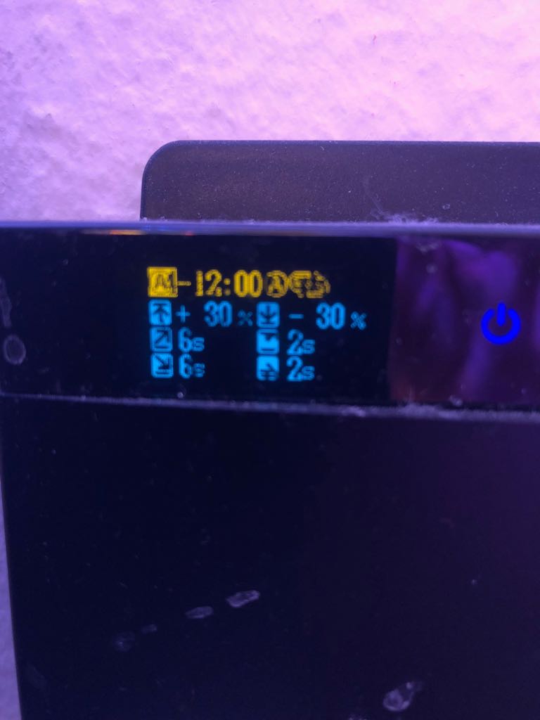 03:00- 21:00 Uhr Gyre, 21:00 - 03:00 Puls. Im Gyre Mod abwechselnde Intensität. Bis jetzt 2.Tag findes es die Korallen und meine Fische cool. Bild von der Einstellung kommt gleich