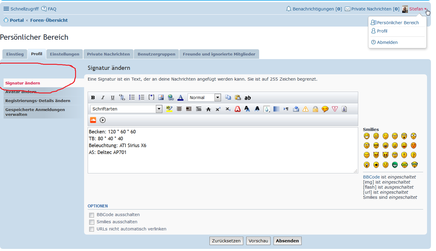 Finde den Hinweis super, bloss bin ich irgendwie zu doof, diese im Profil einzugeben... Hast du einen Tipp für mich?