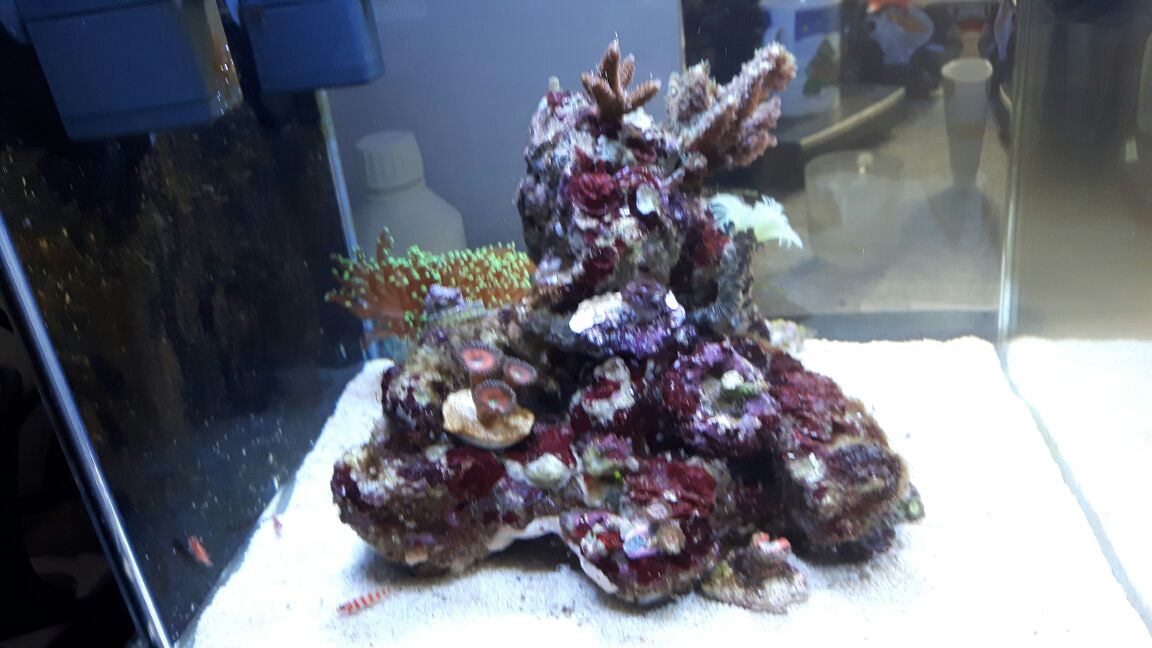 Anbei die aktuellstenächsten Bilder vom nano mit ein paar Bewohnern. Bin sehr zufrieden. Ein paar mini sps sind trotz allem eingezogen da sie im grossen becken nicht so wollten.