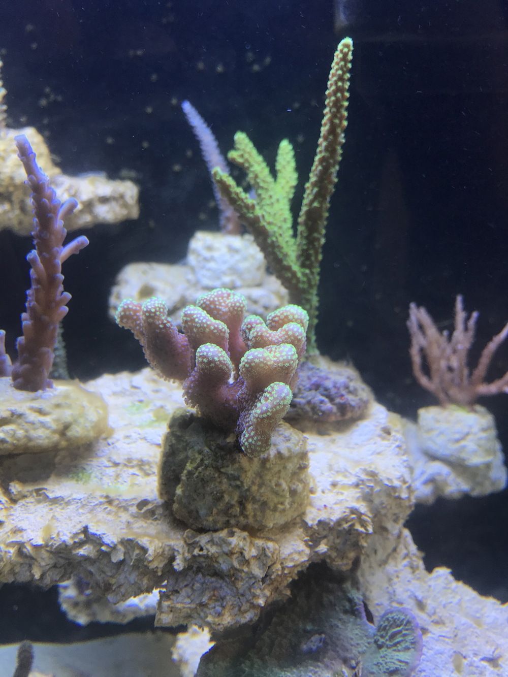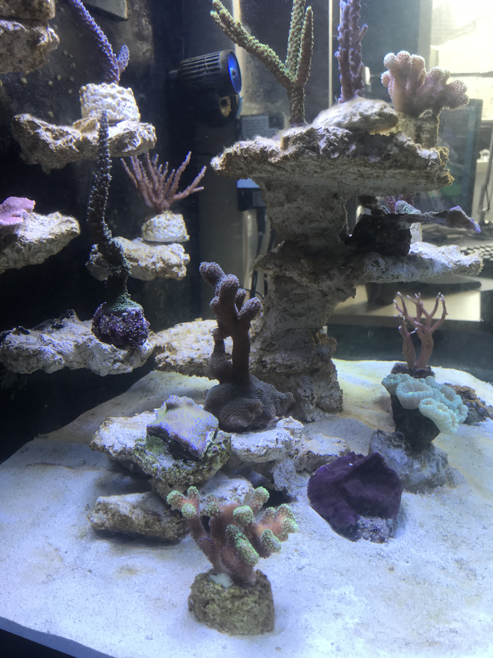 Das Becken läuft soweit ganz gut an, habe bis jetzt kaum Algen, die Korallen stehen, glaub ich ganz gut.
