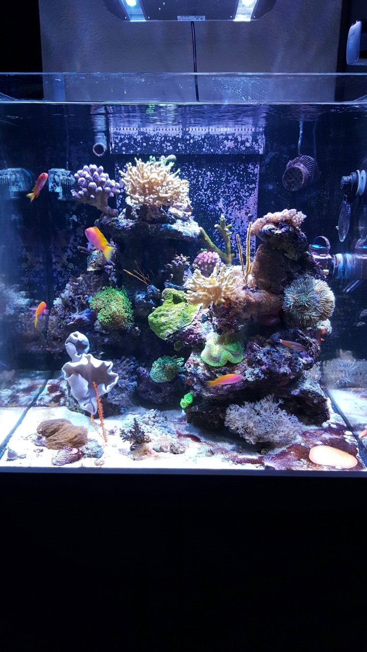 Mit dem Futter ist ein guter Tip, da braucht man wenigstens nicht selber alles durchprobieren Mit der Strömung bin ich immer noch am basteln, damit es wirklich mal so klappt wie ich es mir vorstelle. Momentan habe ich auch etwas "aufgeräumt " im Riff, eventuell sind auch dadurch einige Depos "geöffnet" worden. Das Abschäumen übnimmt bei mir ein Nyos 120 und den habe ich jetzt etwas feuchter eingestellt, weil der echt schon sehr sehr trocken abgeschäumt hat. Im Steigrohr vom Schaumtopf habe ich schon nach 3-4 Tagen eine richtige Kruste.