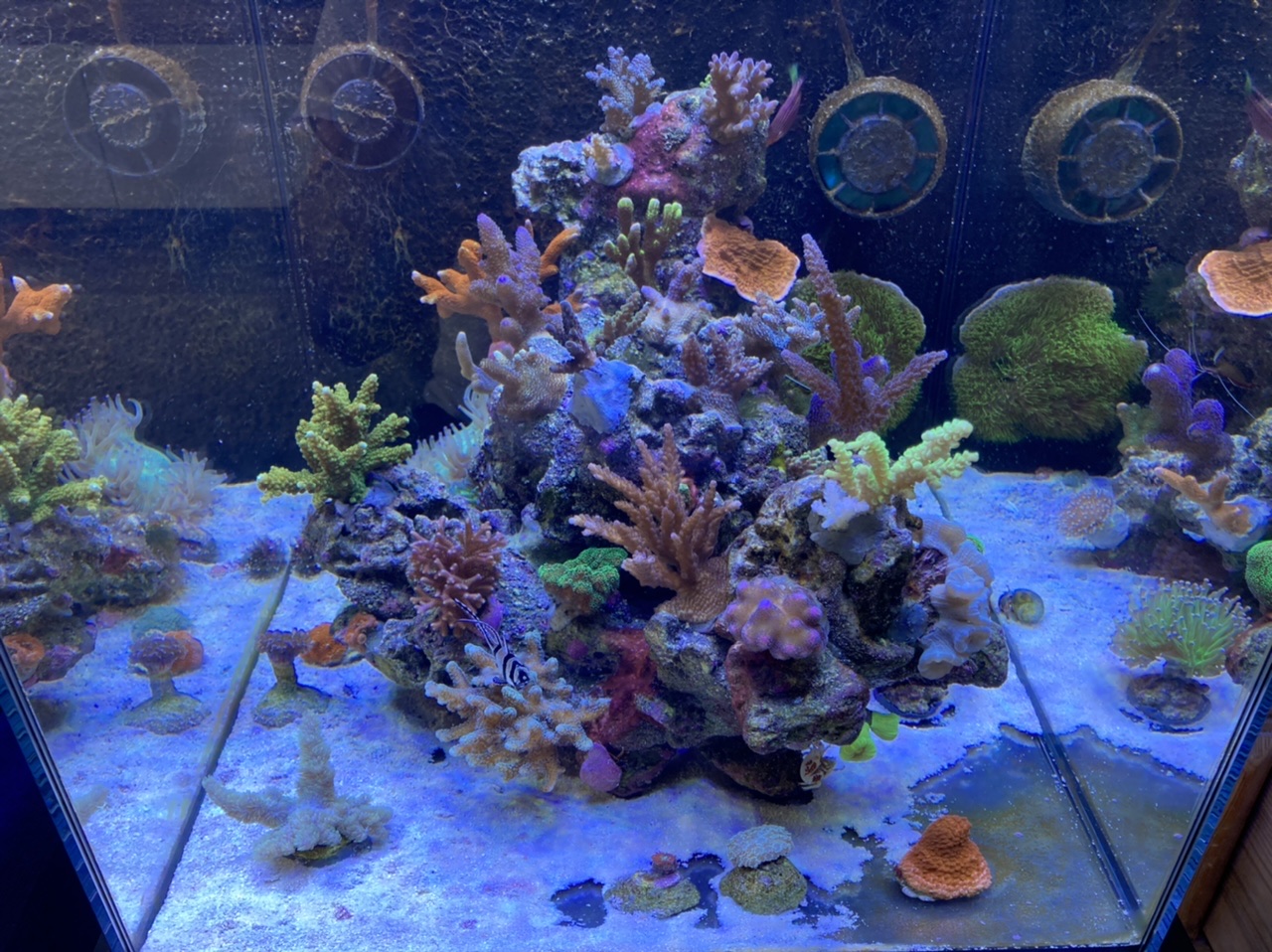 Die Dinos werden weniger…der Sand ist nicht mehr flächig belegt und es fängt sich kaum noch was in den Korallen. Leider gefällt es meiner Catalaphylia nicht so…mal schauen ob die sich fängt. Die hat die letzten Tage immer braune Fäden ausgespuckt, hat vllt. sie die Zooxanthellen ausgestoßen?