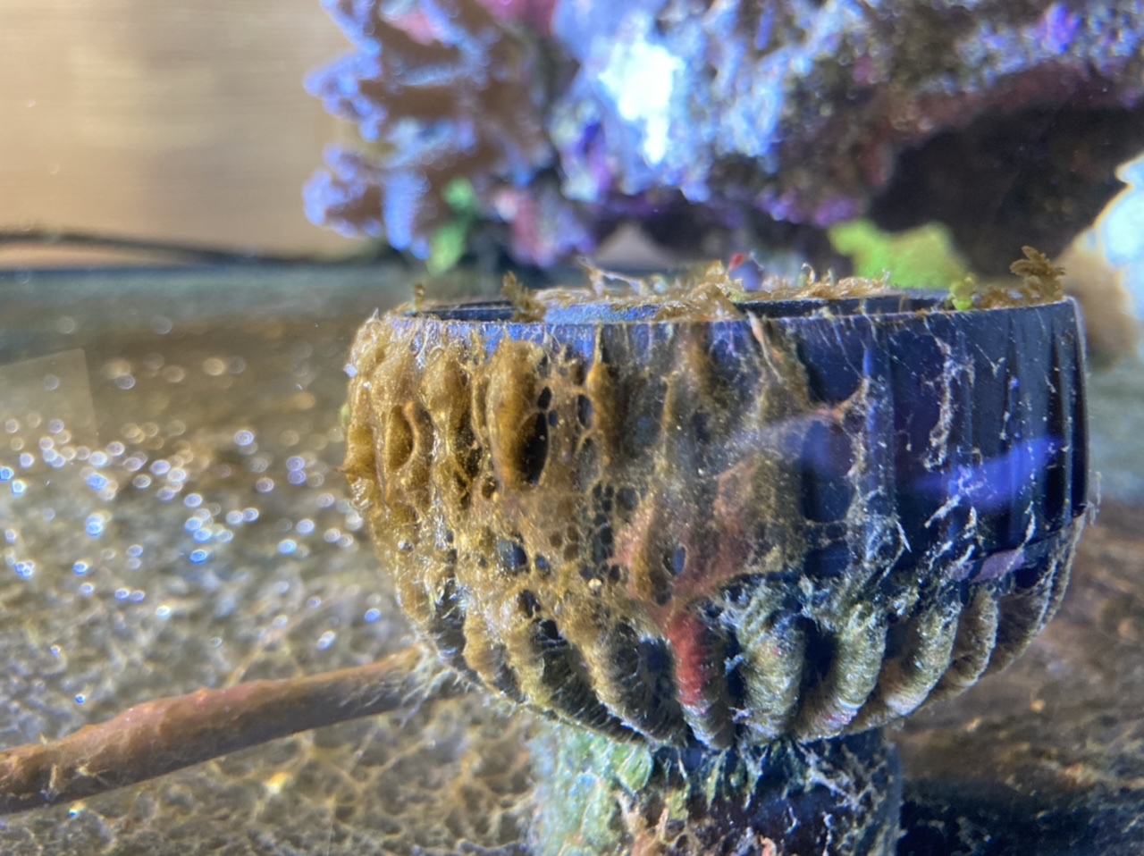 Cyanos kommen trotz des Ansaugens schnell wieder.Korallen geht es gut.