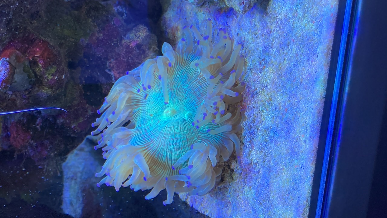 Die Bryopsis werden abgezupft. Die Schnecken gehen zaghaft dran…die Algen werden aber an manchen Stellen blasser…scheinbar macht sich hier auch langsam etwas bemerkbar. Mein NO3 ist wieder von 5 auf 1 mg runter, PO4 bei 0,01. Ich denke, das mögen die Algen weniger…