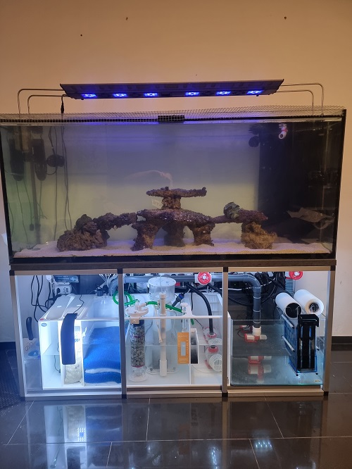 Die Rückförderungspumpe stieg leider aus. Die Fische bekamen zu wenig Sauerstoff, es wurde zuviel Futter gegeben, dies führte zu einem grossen Verlust der Fische und ein paar Korallen : (