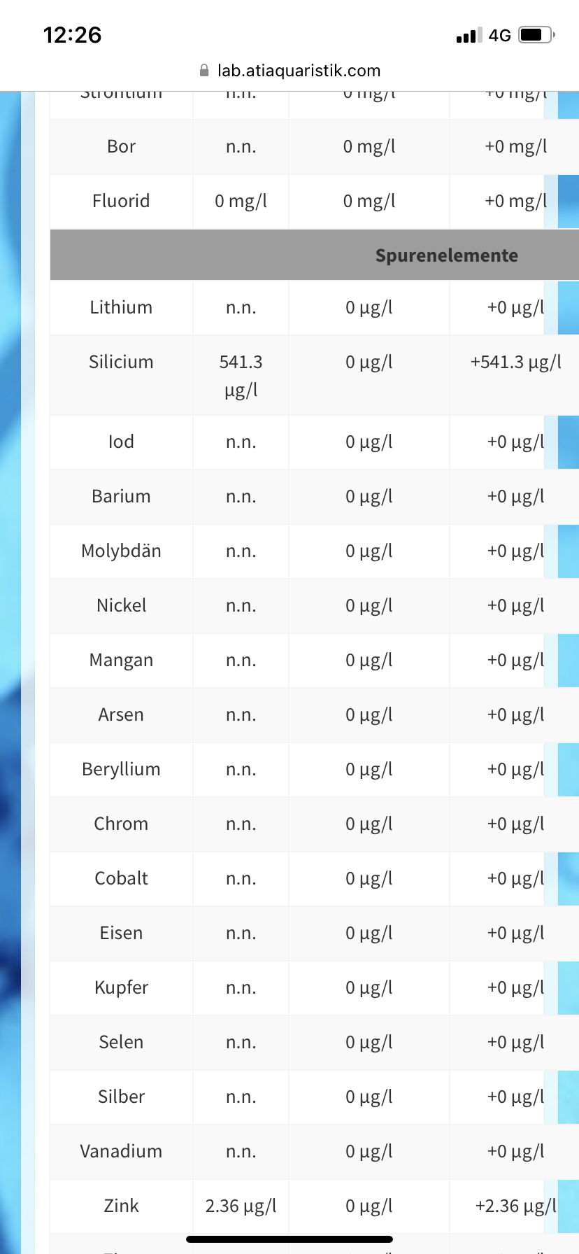 Aluminium ist einem völlig normalen Bereich und unproblematisch. Typischerweise kommt Alu aus Riffzement oder künstlichem Dekorationsmaterial. Aber der Wert ist normal und gut. Das Silikat sollte schon so gut wie möglich raus, bei einer hohen Ausgangsbelastung sind das manchmal nicht unerhebliche Mengen an Harz was man noch nachschalten muss. Silikat ist erst einmal nicht schädlich oder giftig, kann aber eben Kieselalgenwachstum fördern und manchmal gibt es auch Cyanofälle in Kombination mit Kieselalgen. Aber am Besten wie gesagt so gut es geht entfernen.