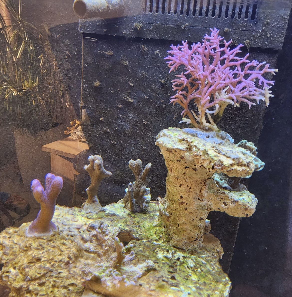 wir brauchen euren Rat. Unser Aquarium steht nun seit Anfang November und aktuell haben wir aber Probleme. Es häufen sich die Algen. Es sah eigentlich schon wieder ganz gut aus aber nun wird es immer schlimmer. Wasser haben wir getestet. Phosphat ist sehr niedrig max. 0,01. Nitrat 0,02, KH 7,3 und Calcium 420. Basis 1 & 2 wird nach Dosierplan hinzugegeben und Startsystem um Phosphat zu erhöhen was aber nicht passiert. Der Sand wird mittlerweile dunkelbraun und rötlich. Eine Koralle stirbt ab und wird von unten weiß. Affenhaar und Gorgonie bleiben zu. Der Rest der Korallen steht sehr gut da und haben Wachstumsspitzen. Im Anhang 2 Bilder. Licht haben wir eingestellt wie beim anderen Beitrag vor paar Wochen von Jörg empfohlen. Das ist unverändert.