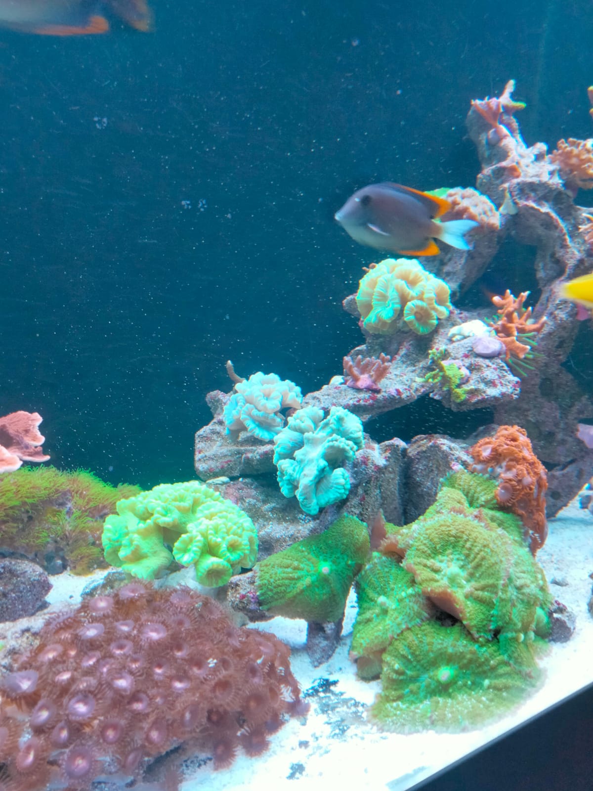 Gestartet wurde es Anfang März, es lief auch erst alles rund, ich habe schnell den Korallenbesatz erhöht und weil ich immer sehr knapp an Nährstoffen war den Fischbesatz nachgezogen. Trotzdem hatte ich, als die Algen anfingen zu wachsen Probleme mit den Nährstoffen, die haben einfach alles gezogen und Po4 und No3 waren nN. Ich habe dann beides vorsichtig dosiert bis es nachweisbar war. Ich arbeite im Moment mit ATI Essentials als Basisversorgung, und überlege die ganzen Ergänzungen von Sangokai zu beziehen.