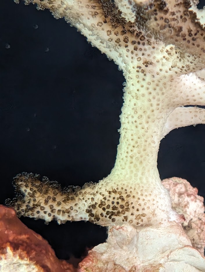 Auch hier liest man viel, die Frage ist, wie sollten wir am Besten reagieren? Sind manche Wasserwerte (z.B. zu geringer Phorphor) verantwortlich? Sollen wir das abgelöste Gewebe abschneiden, oder die Koralle gar fragmentieren? Strömung zu schwach? Oder ists schon zu spät?