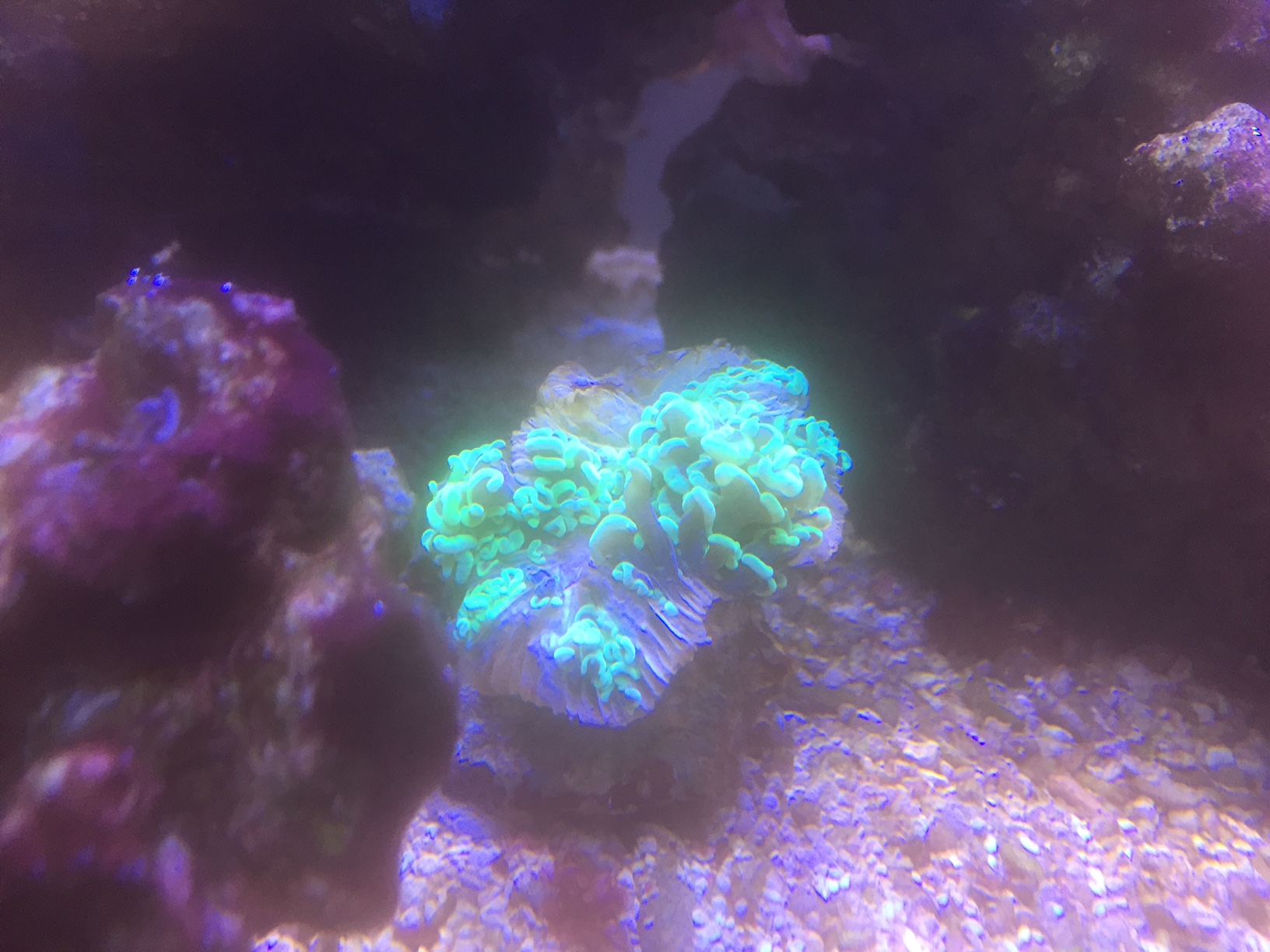 Das an den Scheiben sind meiner Meinung nach Cyanos. Das ist jahreszeitbedingt. Da wird vermutlich eine stärkere UV auch nichts dran. Muss man jetzt einfach aussitzen. Das hat auch nix mit dem schlechten Zustand der Ancora zu tun. Du solltest dringend mal alle Wasserwerte durchmessen. Hast du eine Wasseranalyse aus der du den Bor- und Jodwert ersehen kannst?