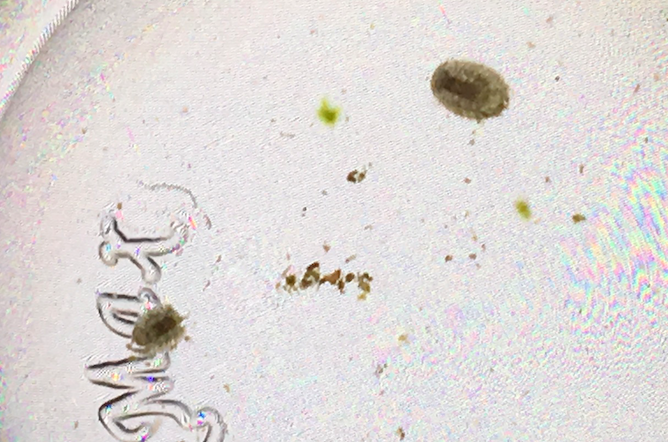 habe gerade das Mittelchen bei der Post abgeholt (The Dip) und gleich mal meine Acroporas darin gebadet. Ein paar "Krabbeltierchen" sind runtergekommen, die zwei Fühler haben, eta 1-2mm groß. Die würde ich jetzt mal nicht als AEFW identifizieren, aber dafür habe ich noch ein paar andere Ovale Tierchen finden können, Foto anbei. Könnten das tatsächlich die Schädlinge sein? Sorry für die Qualität, mehr gibt meine Kamera nicht her....Ich hoffe ihr könnt trotzdem was damit anfangen!? Ich freue mich auf euer Feedback!