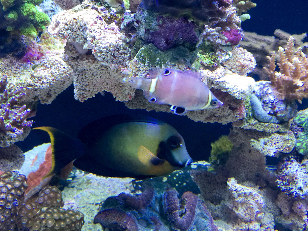 Hi, anbei mal wieder ein kleines Update vom Becken. Korallen wurden pö a pö nach vier Tagen eingebracht. Fische kamen nach etwa 7 Tagen dazu. Bis jetzt tummeln sich ein Acanthurus pyroferus und ein Ctenochaetus tominienis, sowie drei Pyjamas - mein Altbestand. Toni, unser Seeigel kam nach etwa 10 Ta...