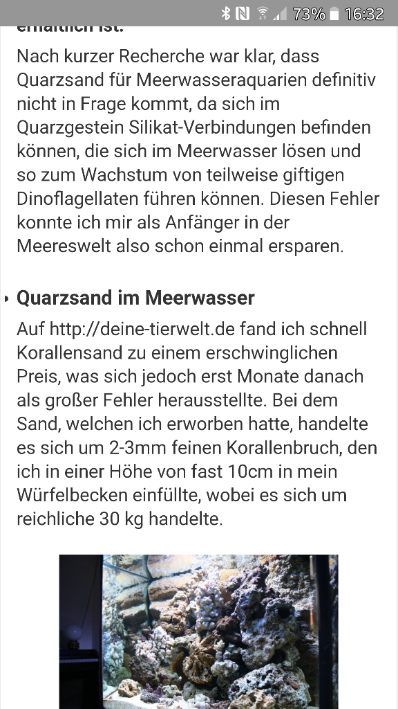 Der Gedanke kam mir eigentlich nur durch ne Probepackung JBL SANSIBAR SNOW, die ich von der optik schon sehr interessant fand - nicht natürlich - aber schön weiss, schön schwer und durchs das Material auch nicht biologisch aktiv, was ja lt. SEAZ nicht unbedingt von Nachteil ist. Natürlich lt.SEAZ viel zu feine Körnung, das weiss ich schon.