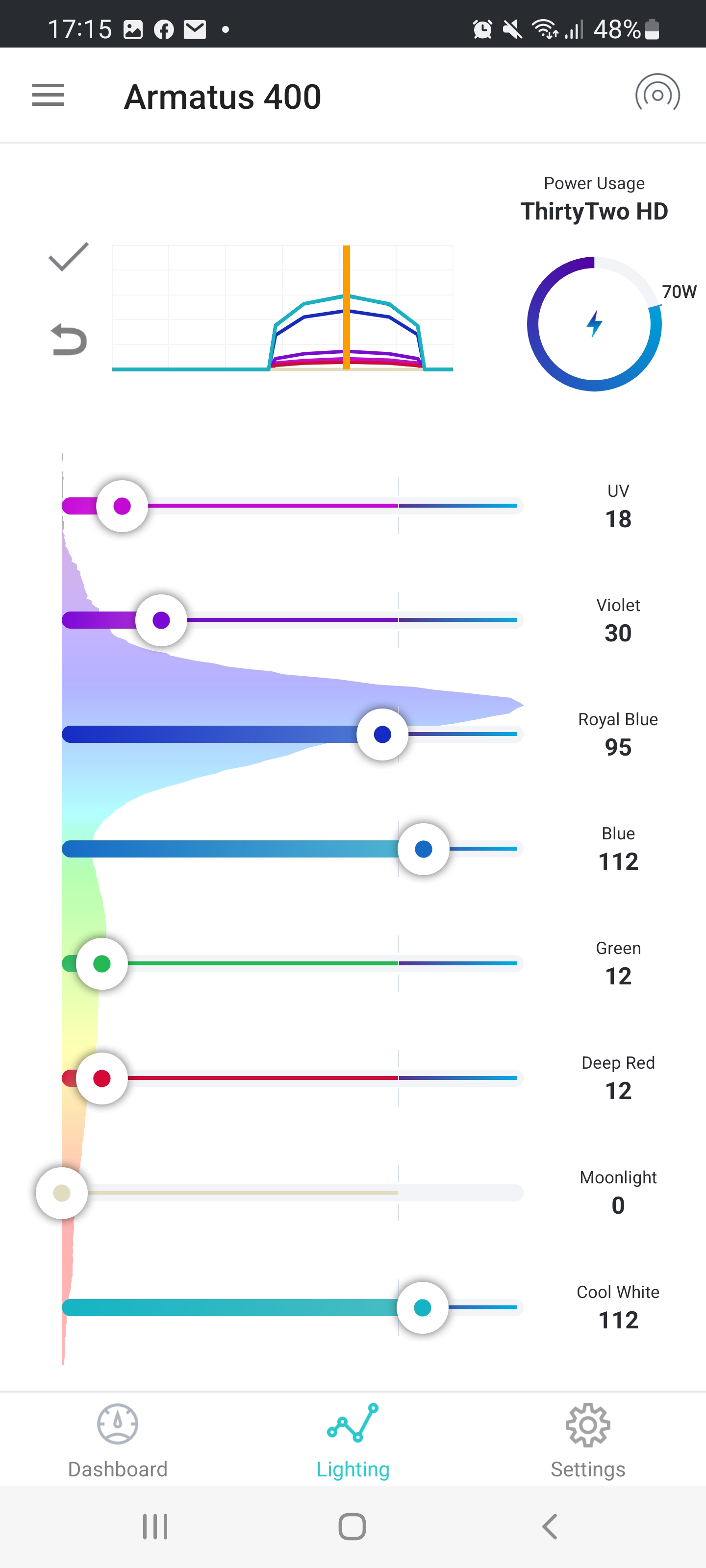 Wenn du die Korallen noch etwas mehr schonen willst, setz UV auf 0 und violett auf 10