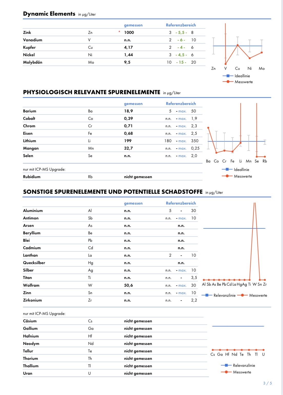 Am Montag habe ich dann eine neue ICP rausgeschickt und heute die Ergebnisse bekommen . Zink ist zwar von >1000 Mikrogramm auf 165 runter, Wolfram ist weg, Mangan ist aber jetzt etwas höher und Eisen dazugekommen. Wie auch immer woher.