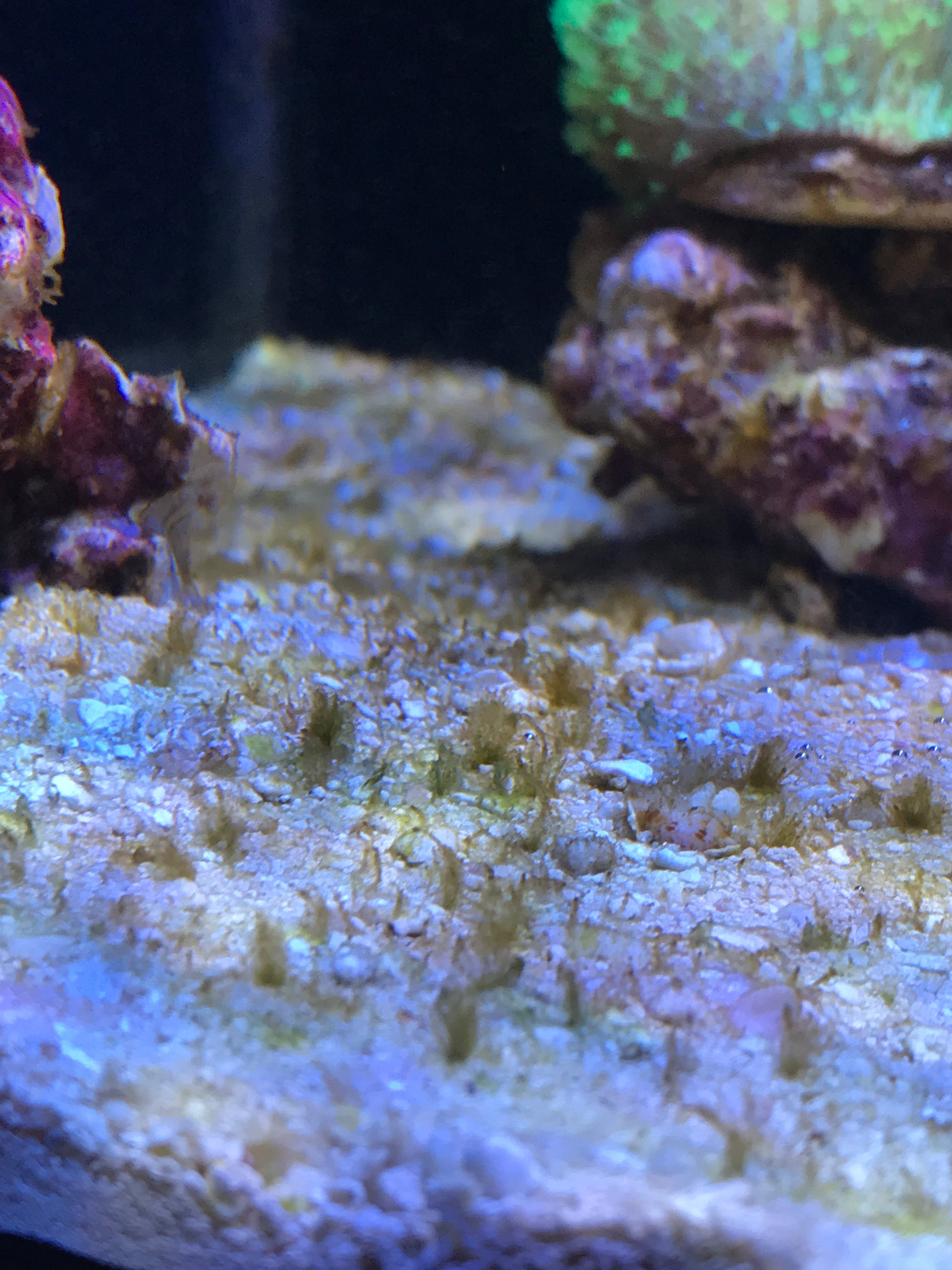 Meine Kieselalgen sind verschwunden und nun habe ich diese Algen bekommen. Sie wachsen am Kies und am Riff, es bilden sich teilweise auch Blasen. Was könnte das sein und gibt es hier Handlungsbedarf?