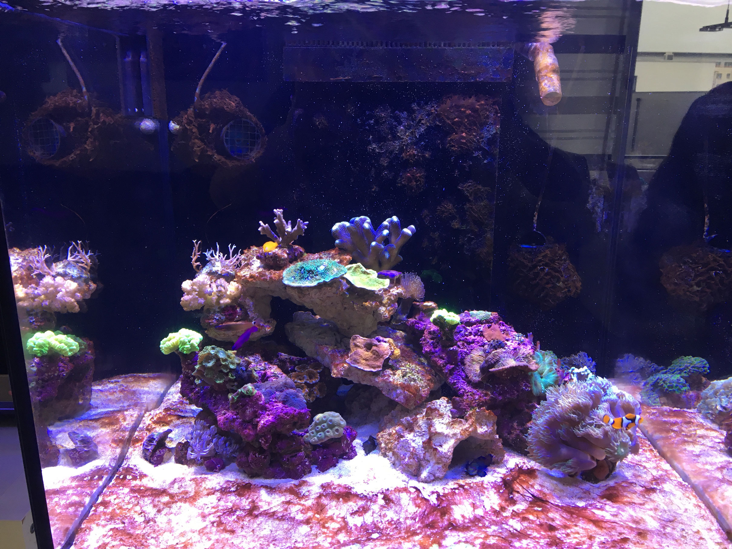 mein Becken befindet sich gerade in der Etablierungsphase. Insgesamt dürfte das Becken gut 8 Wochen laufen. In den ersten zwei Wochen hatte ich nur totes Riffgestein drin und neuen Fiji Sand. Als Salz wird Royal Nature verwendet.