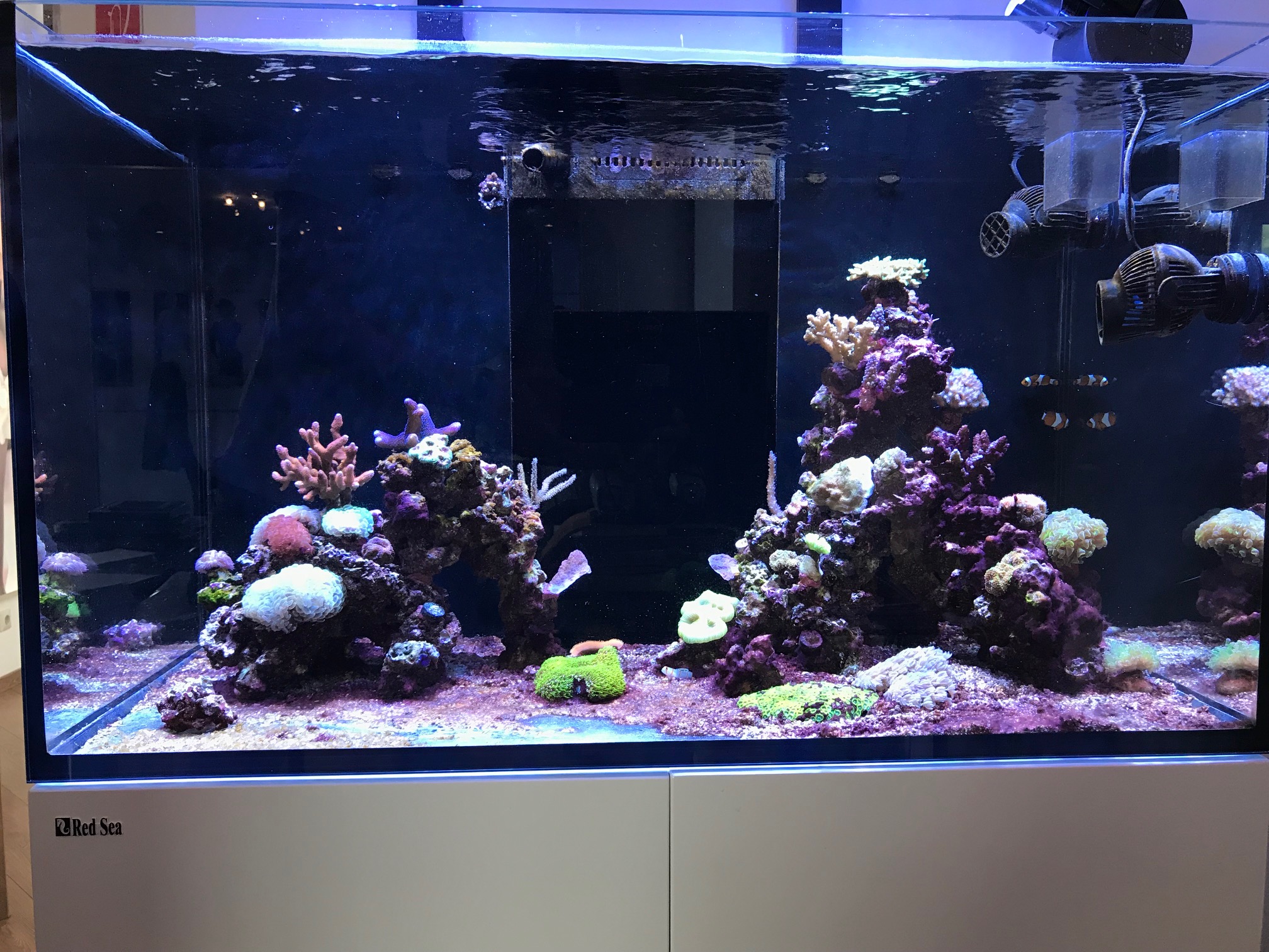 Ich hab gestern einen 10 % Wasserwechsel gemacht (ich verwende ebenfalls das Fauna Marin Salz). Dabei hab ich das Gestein abgesaugt, beim Bodengrund ist es so dass da sehr viel mitgeht da der Sand an der Oberfläche richtig verfestigt ist, deshalb hab ich den nicht abgesaugt. Da nach dem Absaugen viele Schwebeteilchen im Wasser waren hab ich die UV-C Anlage wieder aktiviert da Cyanos ja Bakterien sind. Außerdem hab ich die Salinität um 0,5 angehoben da mir mein Refractometer ca. 34,5 angezeigt hat, hab das mehrfach kalibriert und bin immer auf das selbe Ergebnis gekommen.