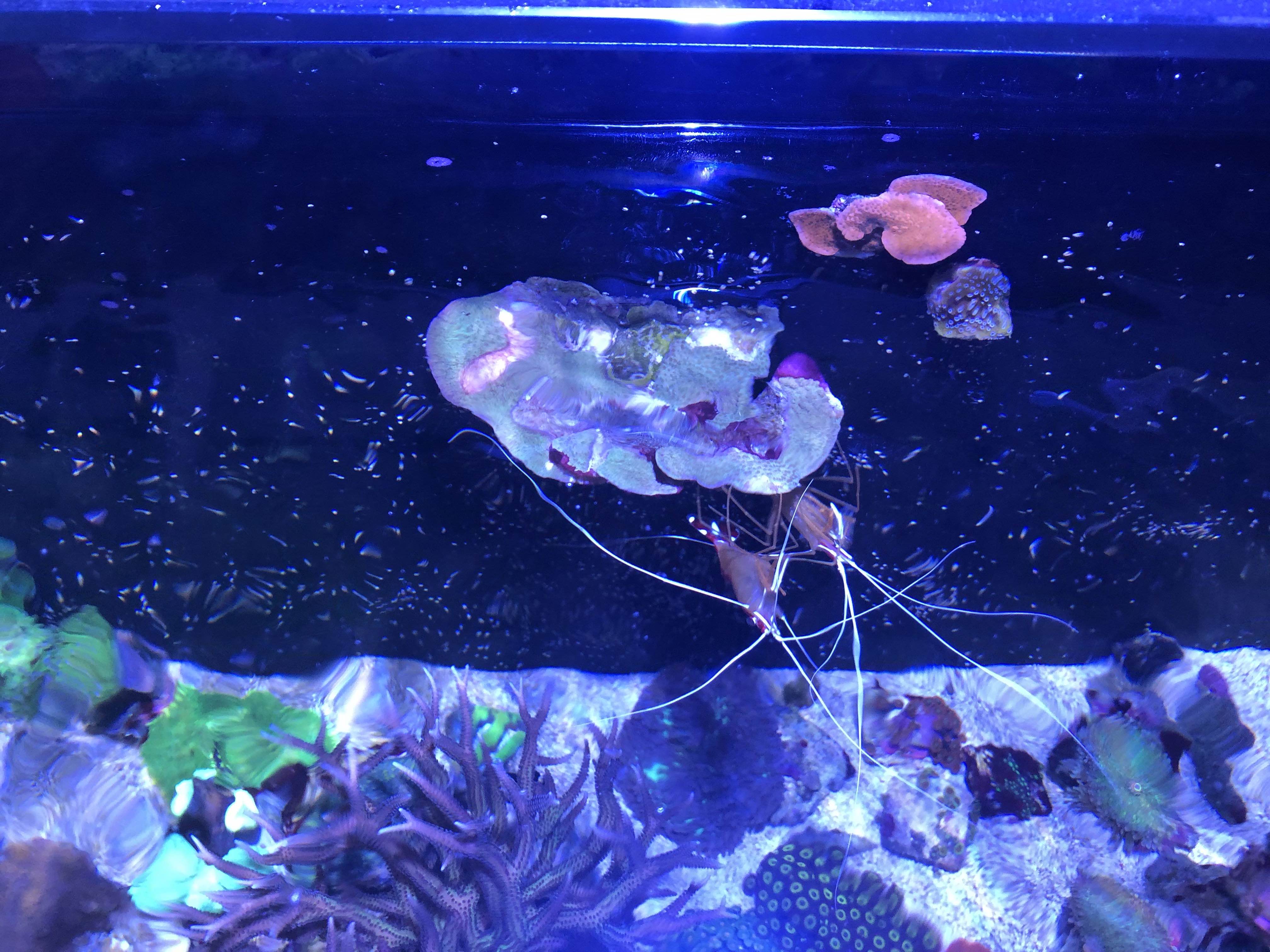 Unser Fischbesatz besteht im Moment nur aus 2 Kaudernis und 2 Nemos. wir füttern kräftig und geben auch den Korallen Lobstereier.