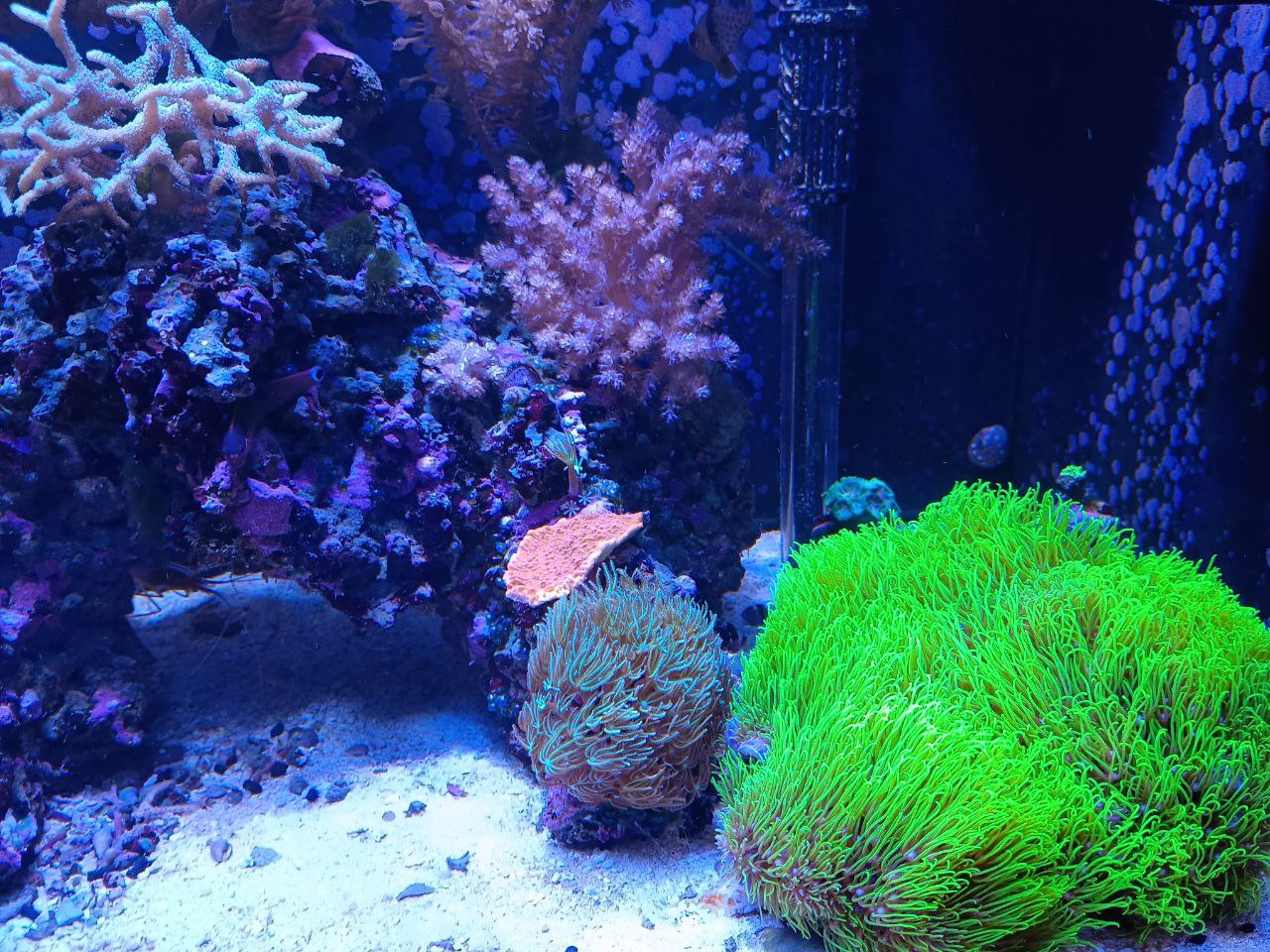 Wie schonmal erwähnt haben meine LPS, zumindest ein paar, mit diesem Aquarium zu kämpfen. Bis heute weiß ich leider nicht wieso sich LPS und Zoa's so schwer tun, während Lederkorallen und die Milka gut wachsen...